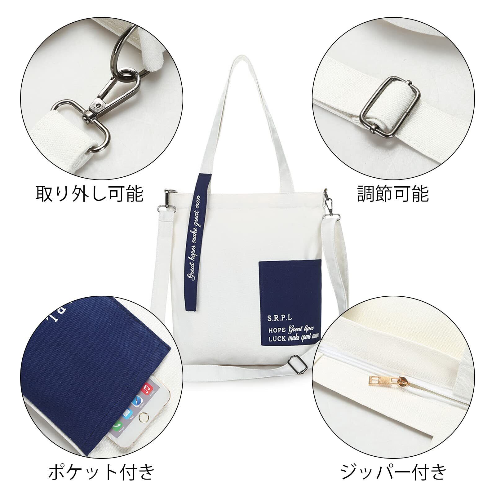 [Enkrio] トートバッグ キャンバス 斜めがけバッグ 帆布 大容量 A4 軽量 ショッピングバッグ 肩掛けバッグ 手提げ袋 折り畳み ポケット レディース メンズ おしゃれ 通学 通勤