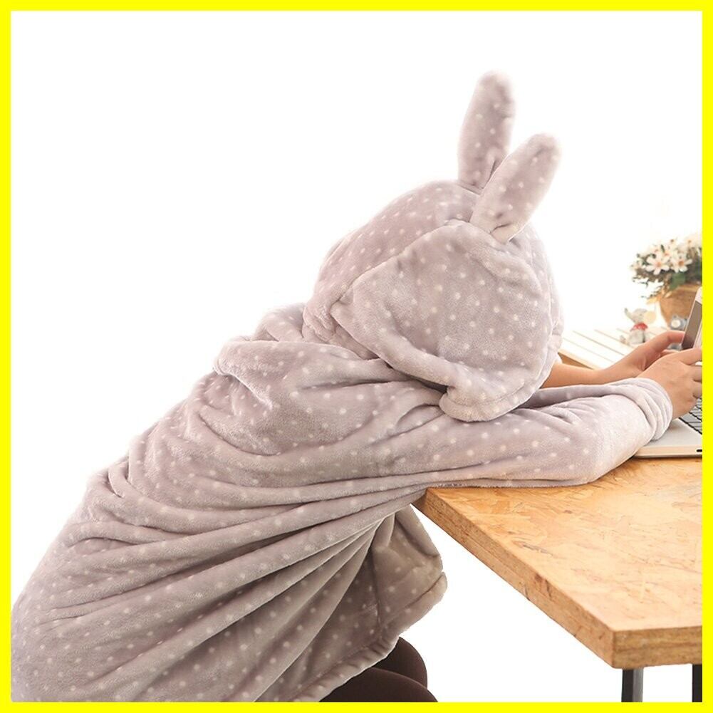 ファスナーの構造、はだけることなく体を暖める着る毛布です。帽子あり、取り外しは可能、ボタンを掛けると、袖になります。とても便利なデザインです。寝ても立っても動いても、暖かく着たままでいられます。