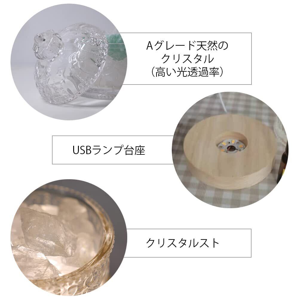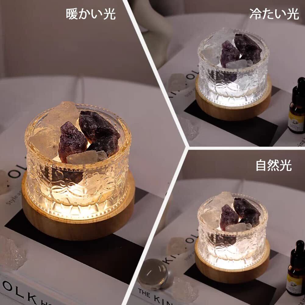 HIGHAWKアロマランプ ベッドサイド クリスタル ガラス瓶 睡眠ライト 雰囲気 蓋付き USB アロマ用 空気浄化 ランプ台座 三色ライト(ホワイト)