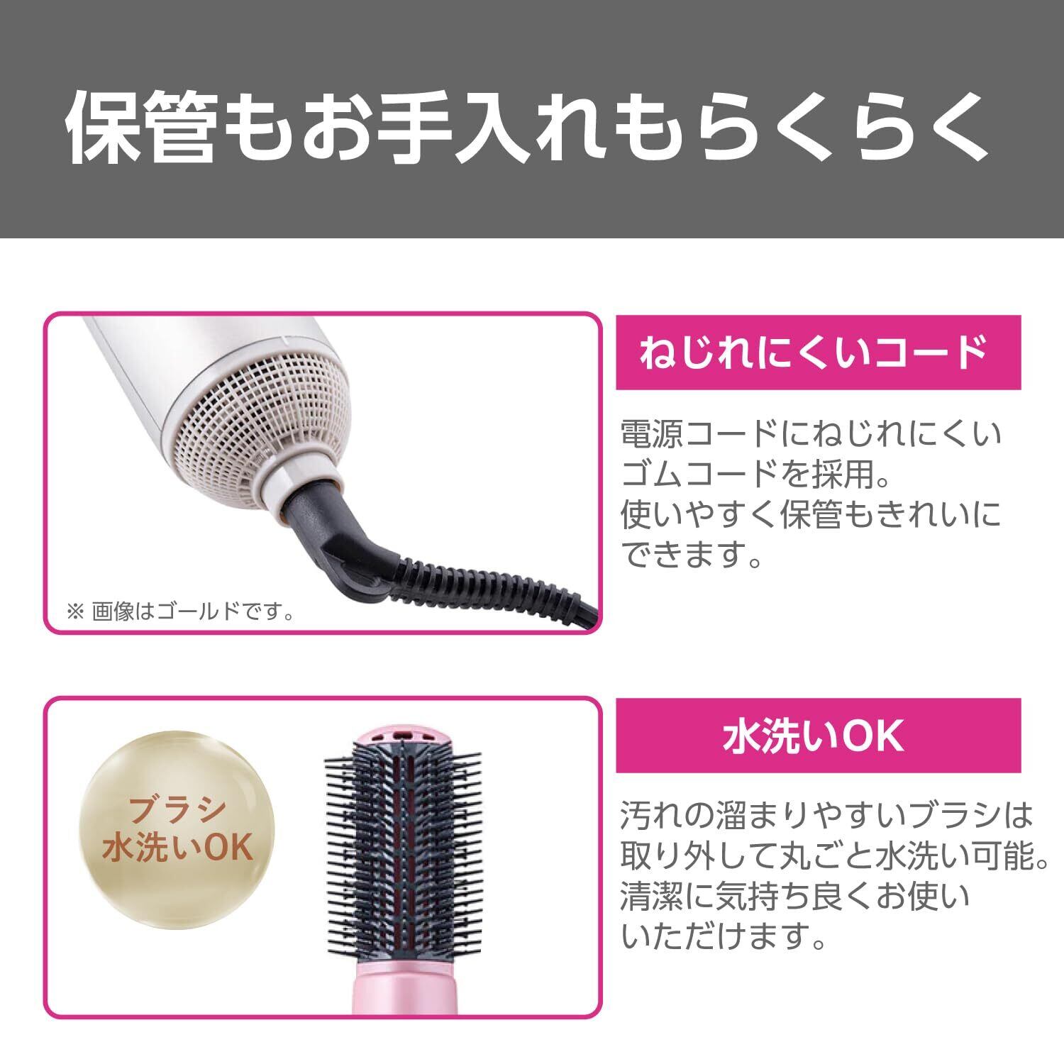 ■電源コードにねじれにくいゴムコードを採用、使いやすく保管もきれいにできます。
