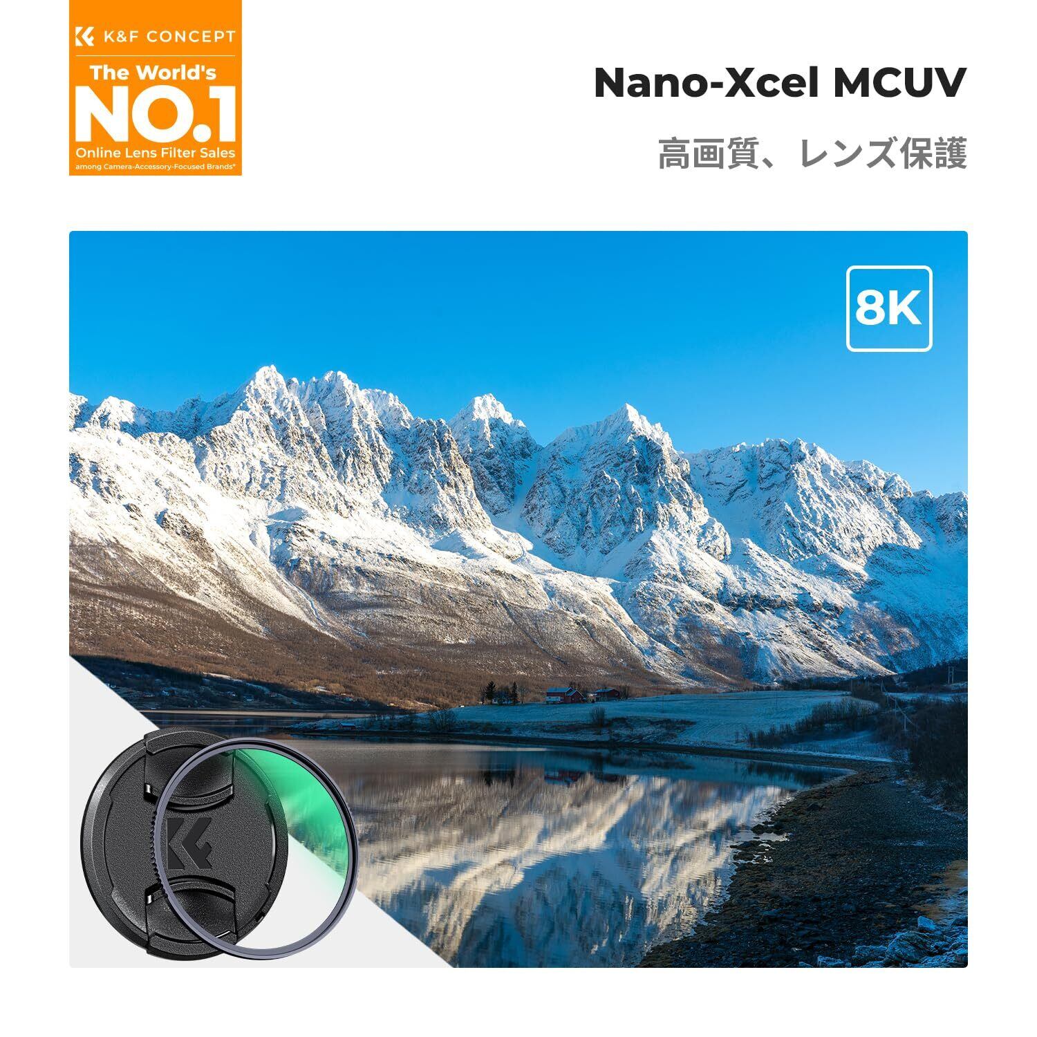 K&F CONCEPT 82mm MCUVフィルター レンズ保護フィルター レンズキャップ付き 高透過率 28層コーティング 紫外線カット 光学ガラス 薄枠 レンズ保護用 1枚クリーニングクロス付属 望遠撮影に対応 (Nano-Xcel)