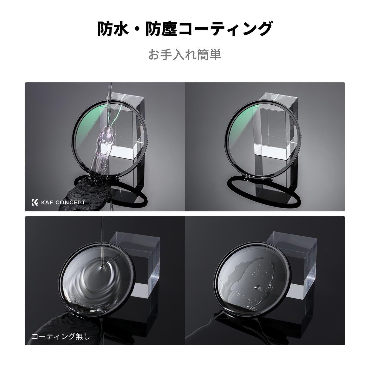 【多層コーティング】フィルターは高品質光学ガラス、両面多層コーティングでフィルター表面の反射光を効果的に減らすことができます。優れた撥水・撥油・傷防止28層コーティングが施され、水滴や汚れが万一付着しても簡単に拭き取りが可能です。