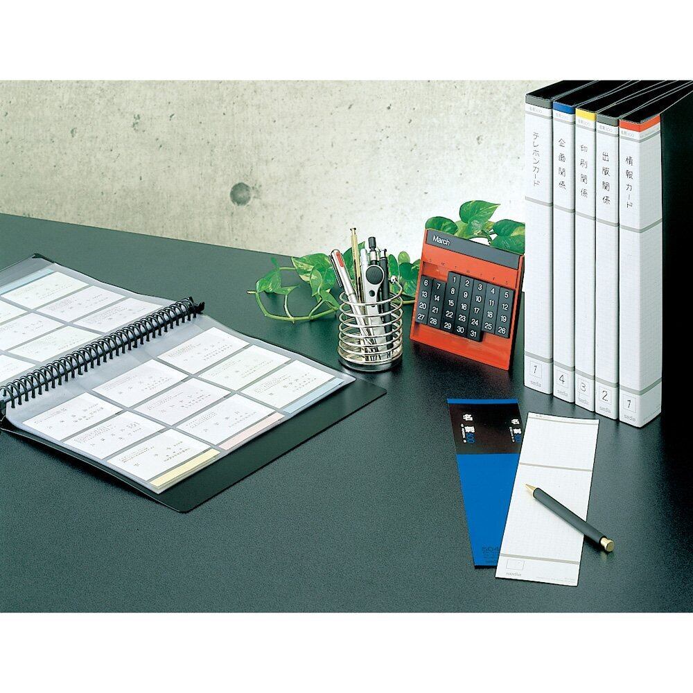 名刺ホルダー補充用ポケット。 カラーインデックス付き。 タテいれポケットとヨコいれポケットを同じファイルにとじることも可能です。 NPX-18とNPX-20のポケットの仕上りサイズは同じです。