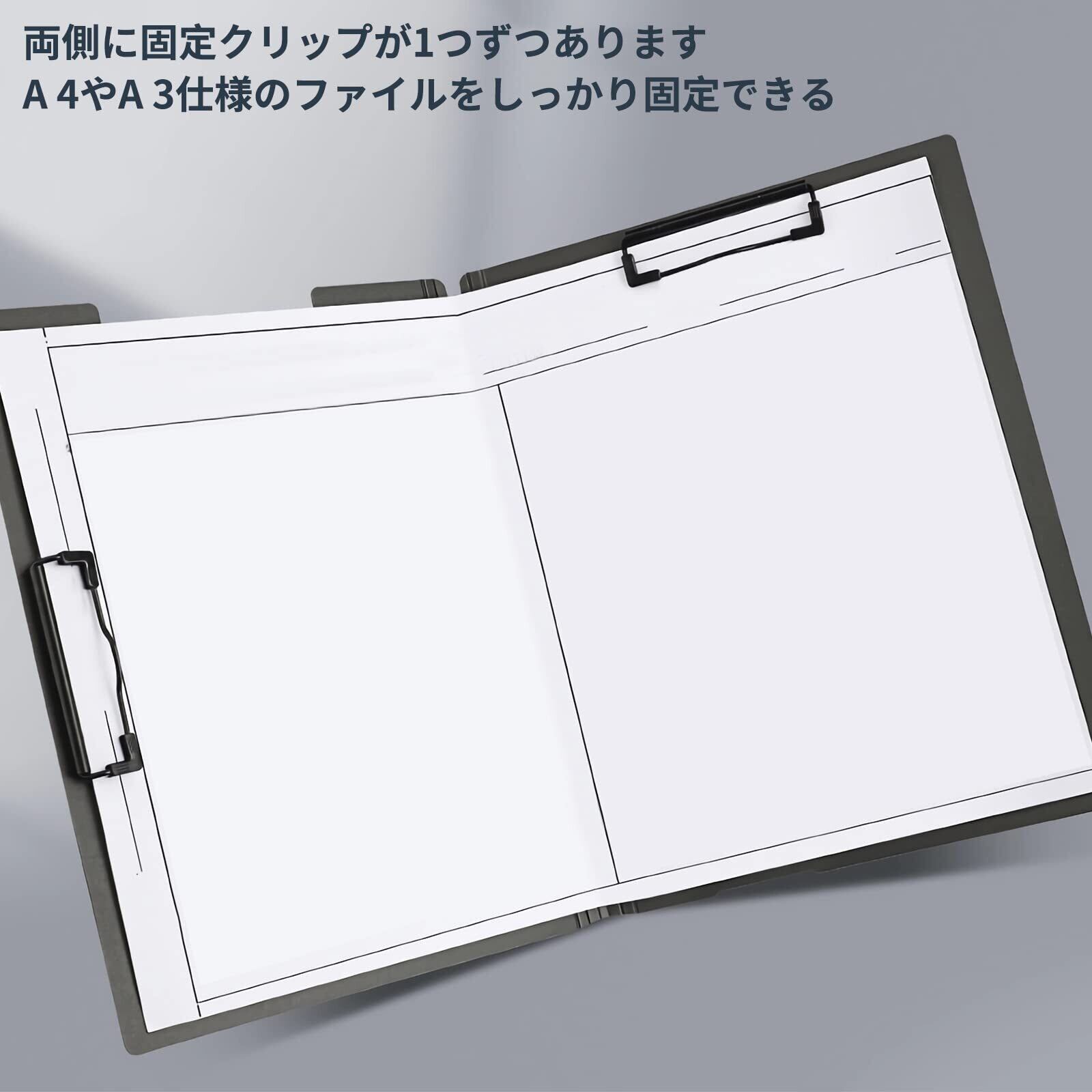 バインダー A4 2つ折り クリップボード バインダー a4 ルーズリーフ バインダー A4/A3適用 クリップボード プレゼント ギフト 贈り物 PU ファイル 文房具 バインダー 事務用品 現場仕事 便利グッズ 文具 文房具 便利 人気 (ブラック 2枚)