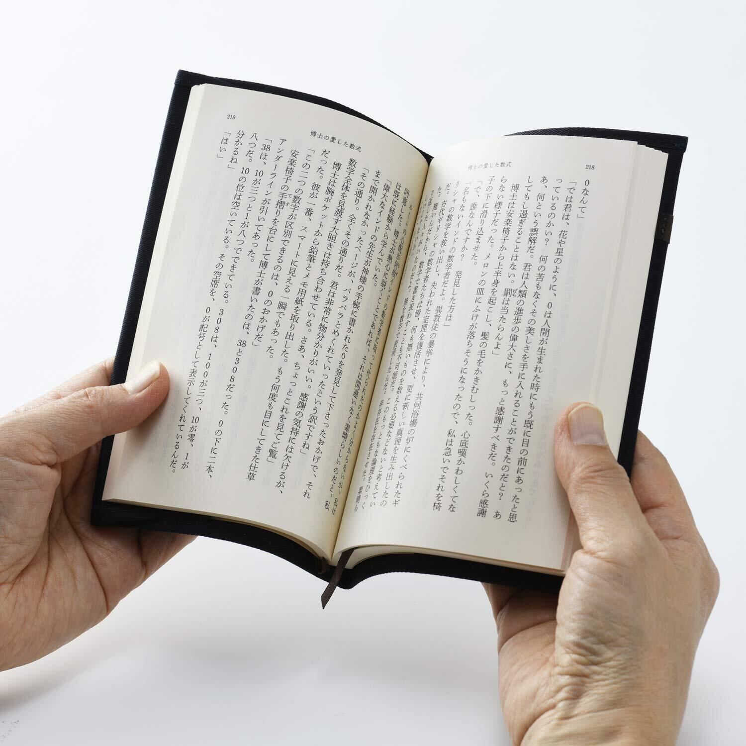 【仕様】シンプルな無地のコットン生地を使いました。男女問わずお使いいただけるデザインに加え、しおり紐が付いていて大変便利。本の厚みにあわせて調整ができるので本にぴったりかぶせることができます。