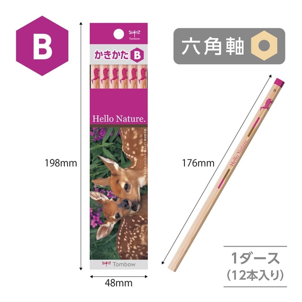 トンボ鉛筆 鉛筆 ハローネイチャー かきかた B オジロジカ 1ダース KB-KHNWDB