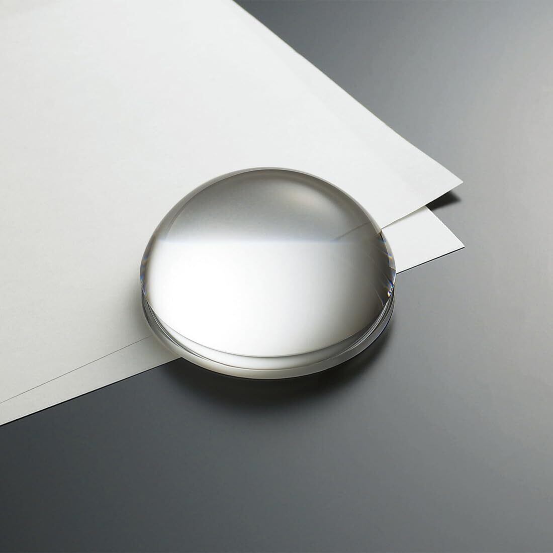 光学(オプティカル)ガラスならではの、 ルーペ機能を持つペーパーウェイト。(ルーペ倍率は3倍程度) デスクトップで活躍する実用的アイテム。