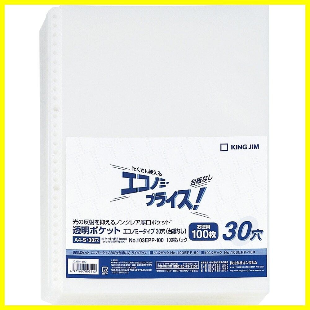 キングジム(Kingjim) 透明ポケット リフィル A4 30穴 台紙なし 100枚 103EPP-100