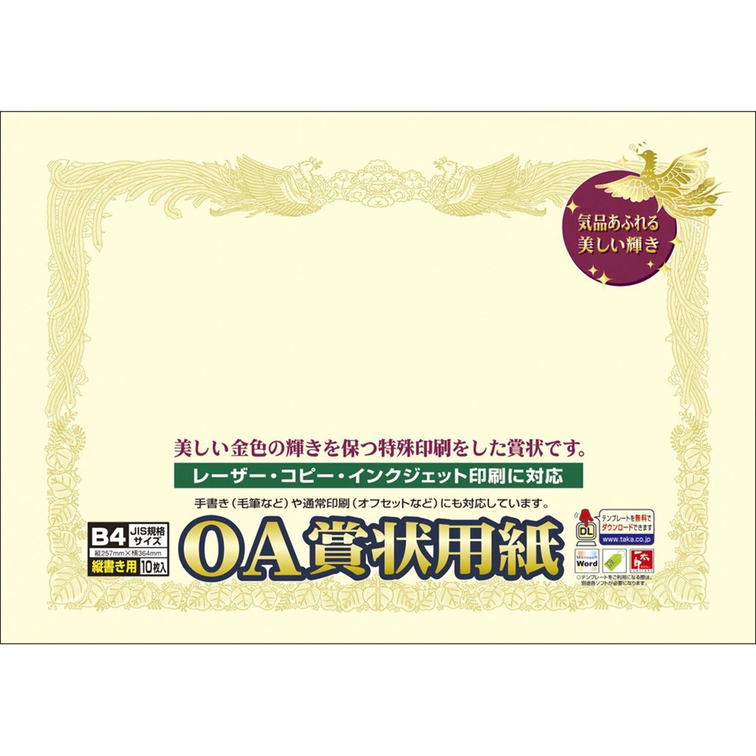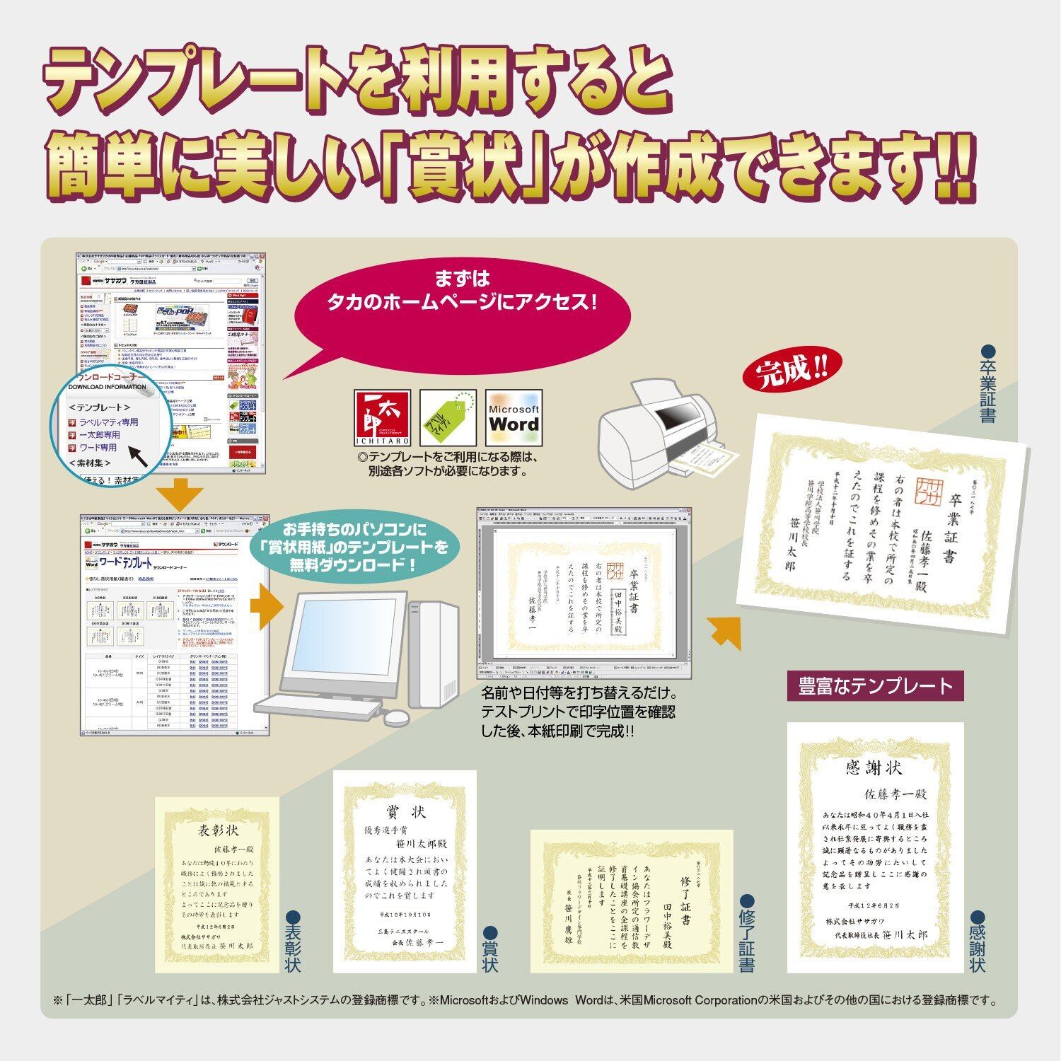 ササガワ 賞状用紙 タカ印 OA対応 縦書き用 クリーム B4 10枚 10-1077