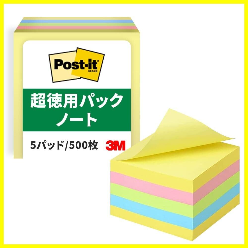 3M ポストイット 付箋 大きい 超徳用 ノート キューブ パステルカラー 75×75mm 500枚 CP-33SE-AM