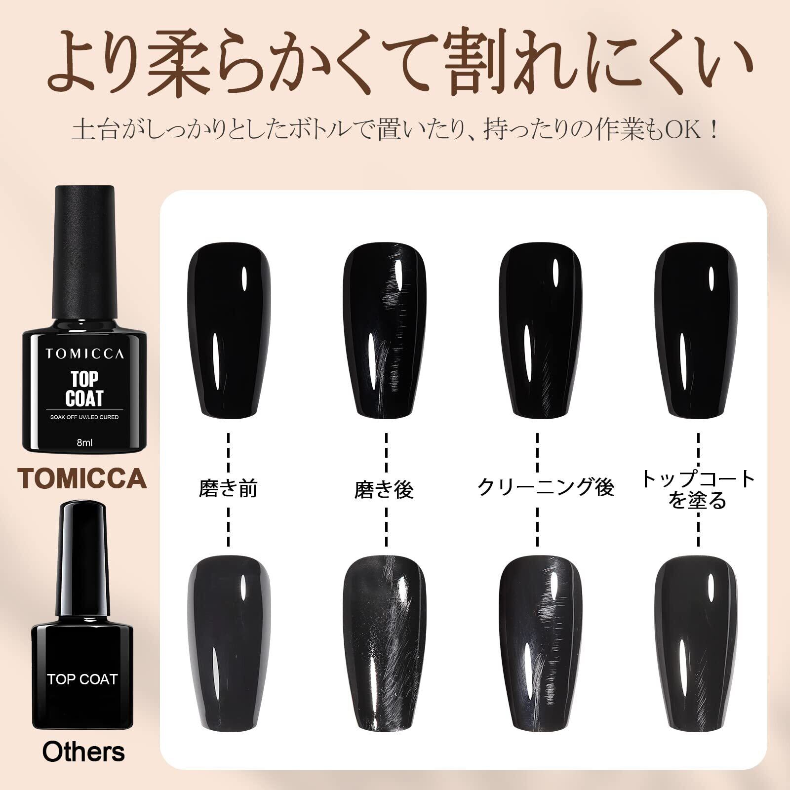 TOMICCA ジェルネイル トップコート ベースコート 8ml 2本セット ノンワイプ 拭き取り不要 大容量 UV/LED対応