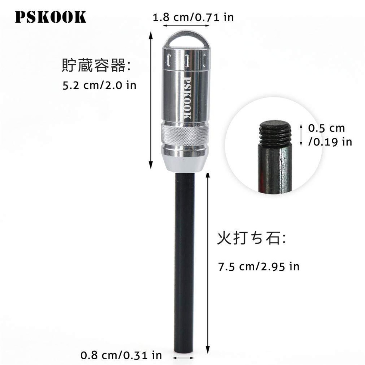 【携帯便利と着火しやすい】マグネシウムバーの長さは7.5cmです、直径は8mmです、初心者でも簡単に着火します。マグネシウムバーとハンドルの部分はねじで接合しています、とても丈夫です。