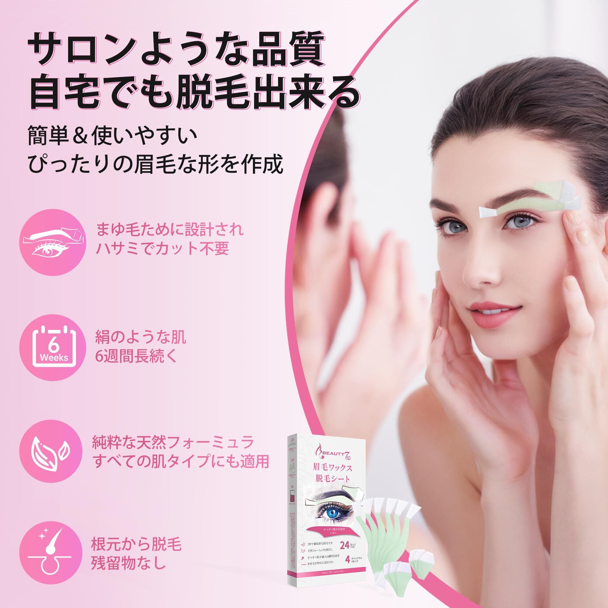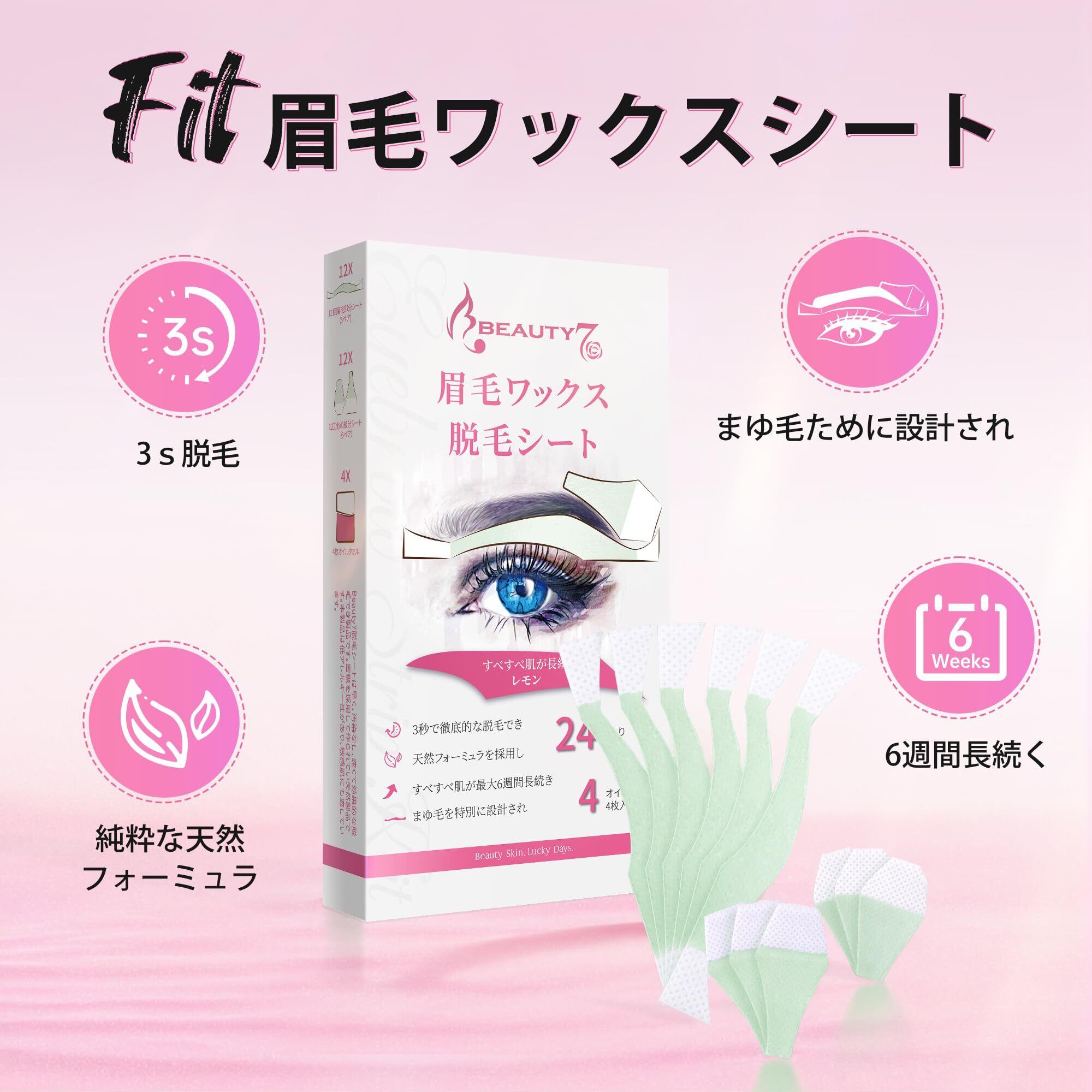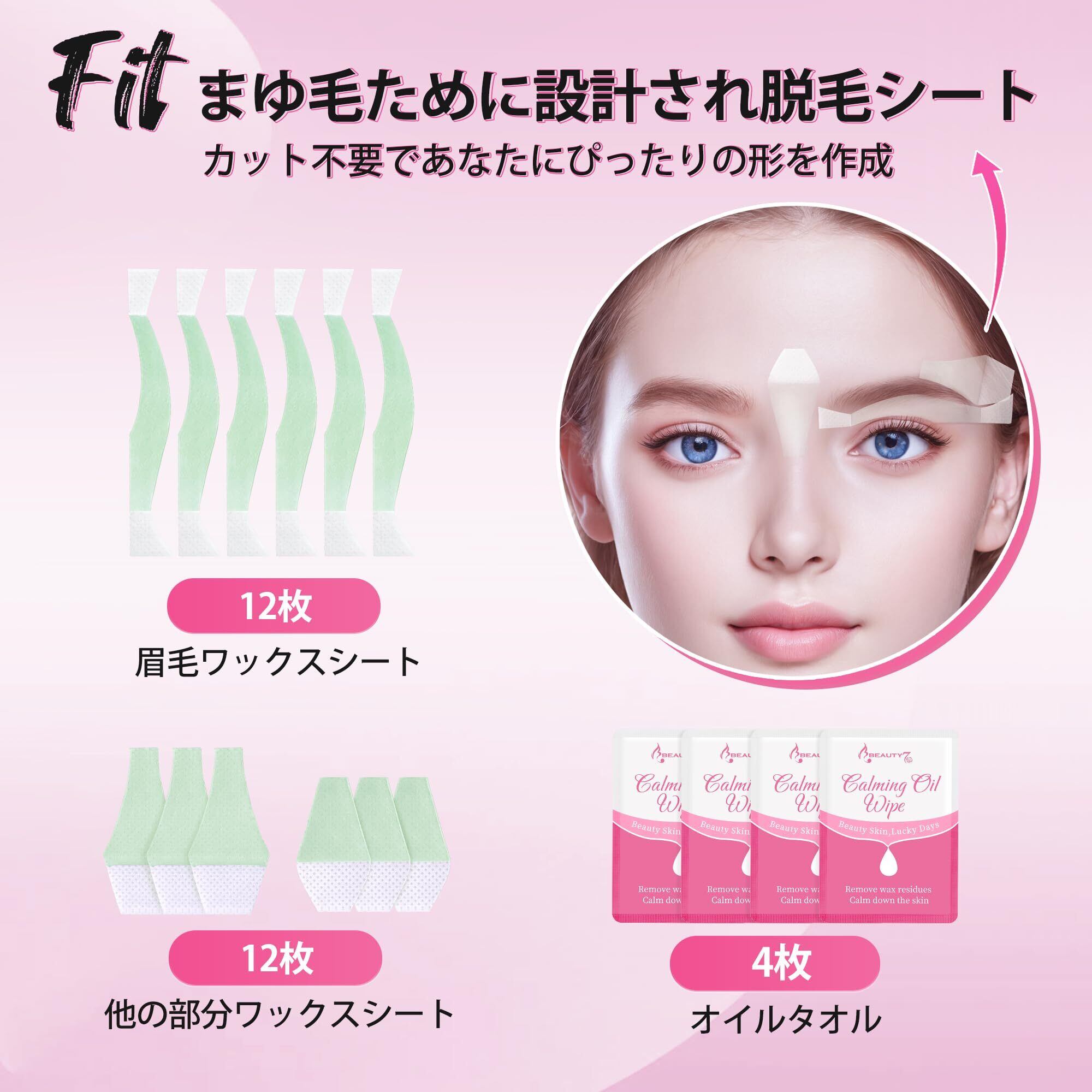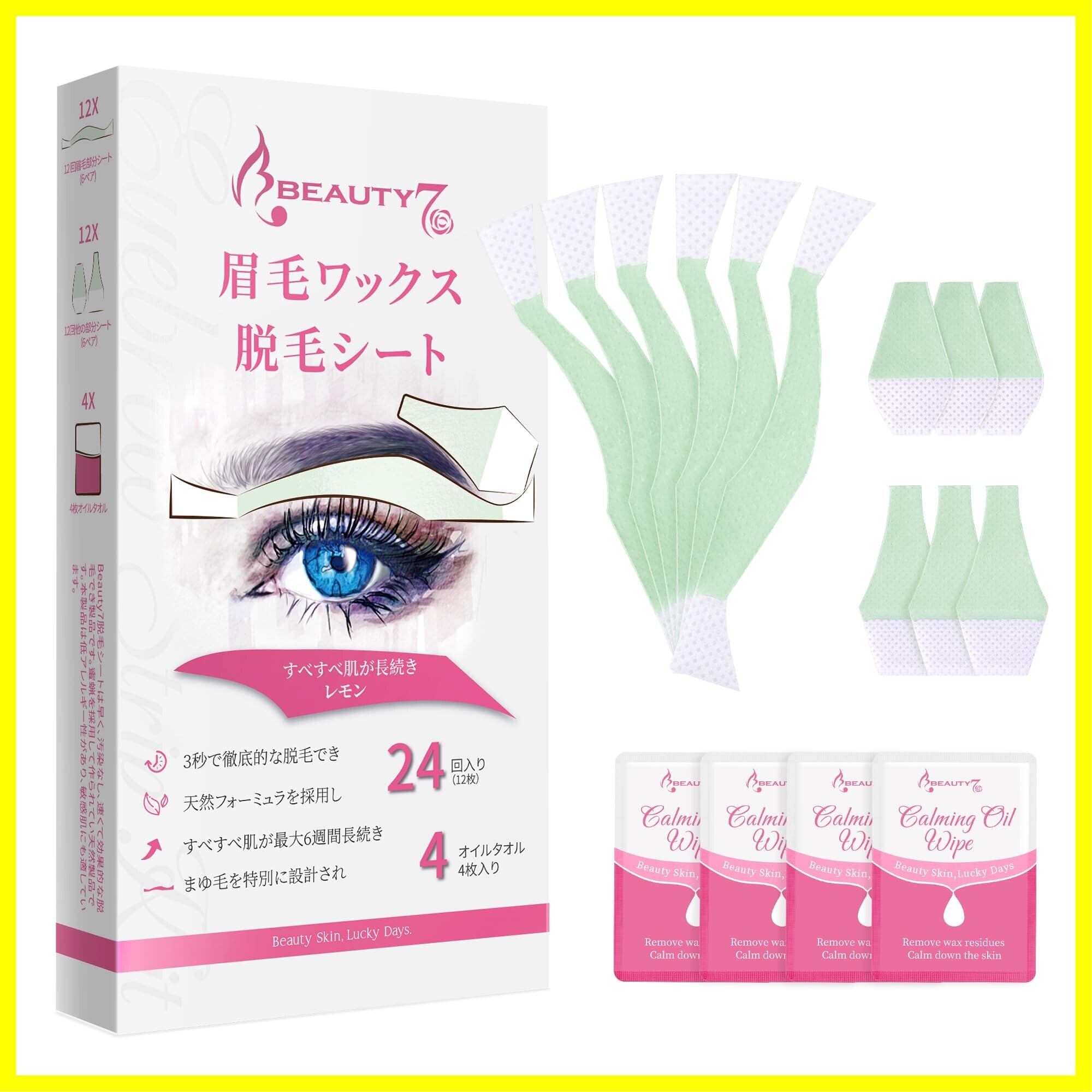 Beauty7 眉毛脱毛シート 12組 24枚 入り まゆ毛用 顔 眉毛 だつもう 口元脱毛ワックスシート 脱毛テープ 敏感肌 除毛 レディース メンズ 兼用(24枚)