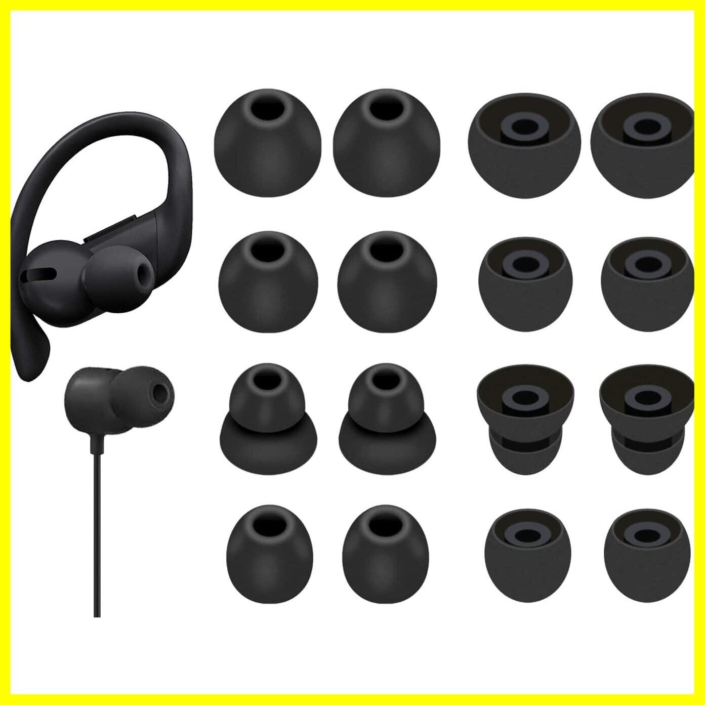 A-Pcas イヤーチップ Beats Flex イヤホン用 イヤーピース Powerbeats Pro イヤホン用 イヤーチップ BeatsX イヤホン用 イヤーピース シリコン製 4サイズ 8ペア ブラック 23