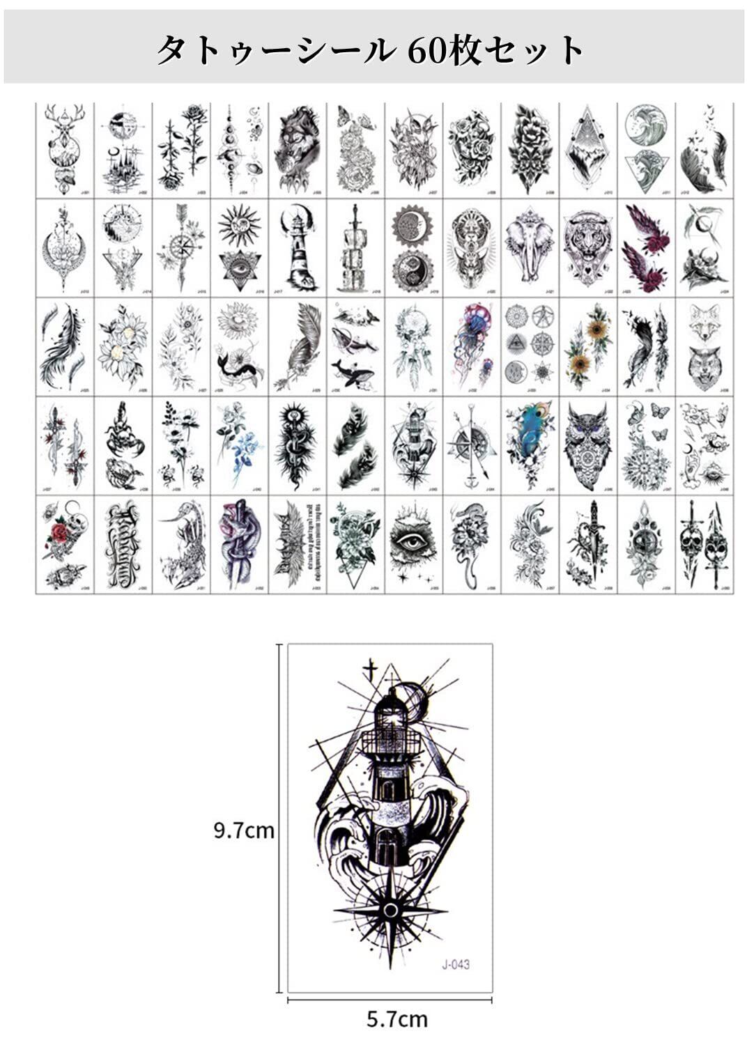 タトゥーシール 刺青シール 60枚セット入れ墨シール タトゥー リアル 防水 長持ち おしゃれ かわいい (Aシリーズ)