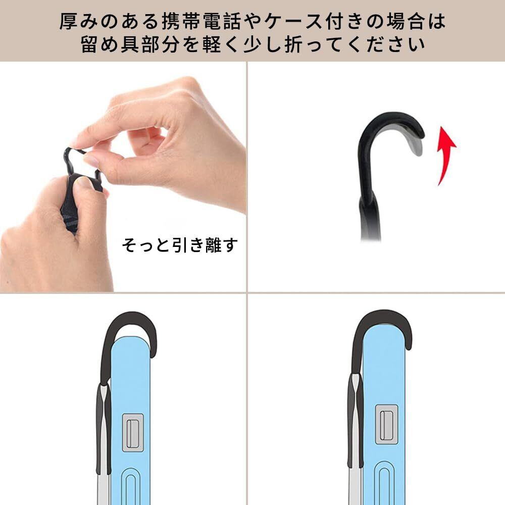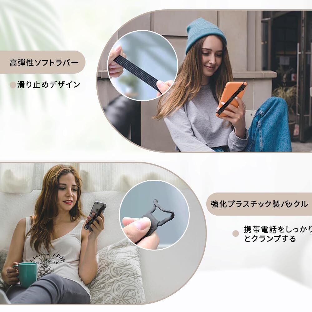 スマホバンドスマートフォン スマホ滑り止め 落下防止ト用 片手持ち 落下防止 グリップ ベルト スマホ落下防止バンド 簡単脱着 挟み込み クリップ バンドル(13cm*2cm 1個ブラック)