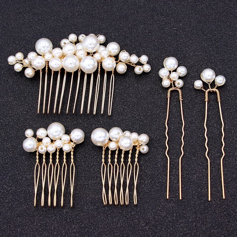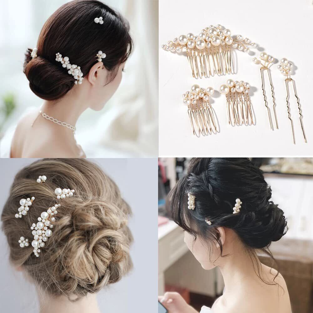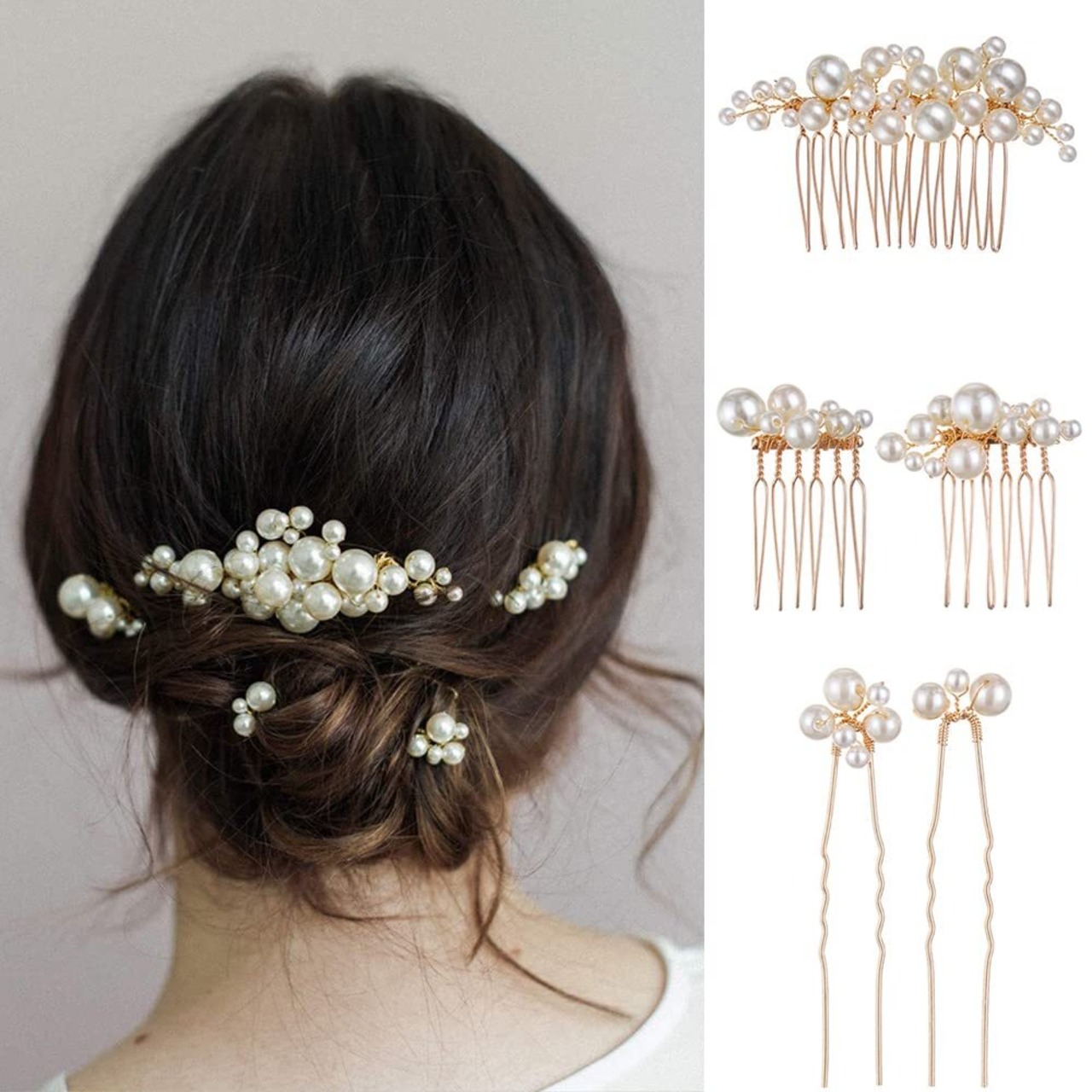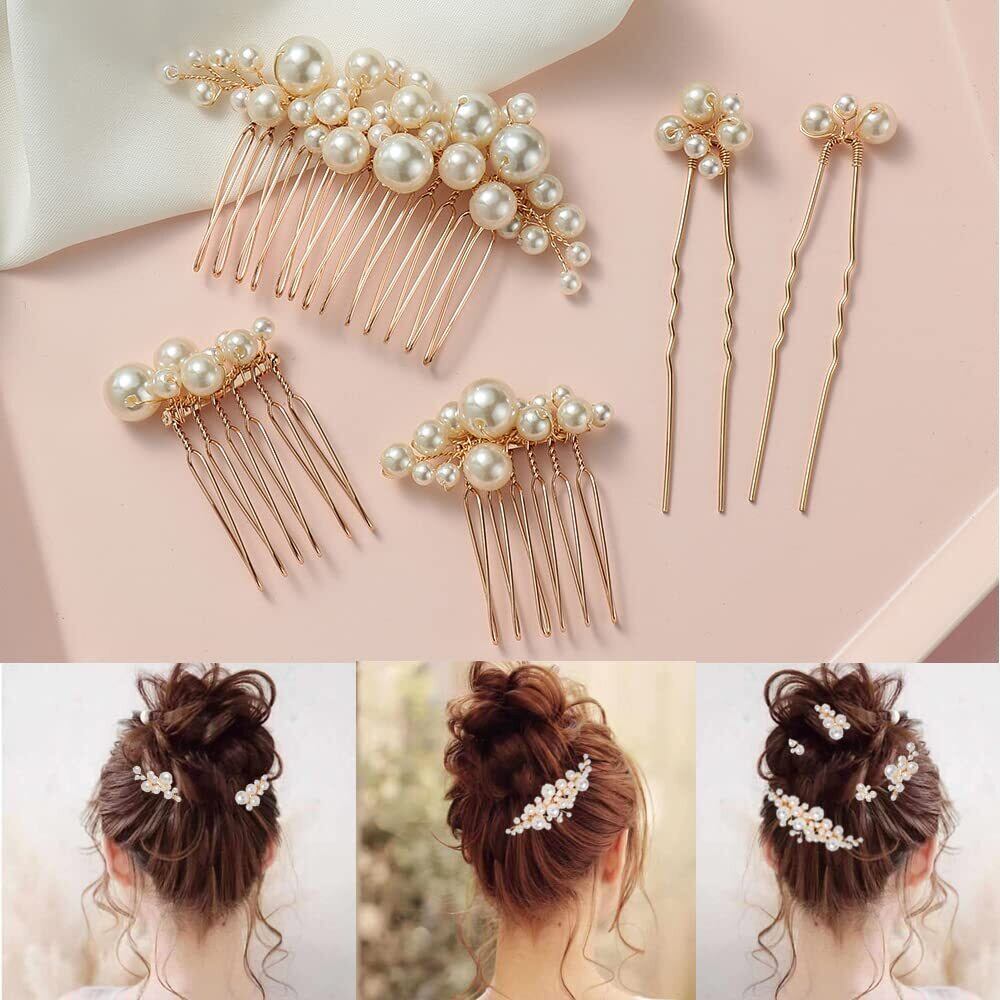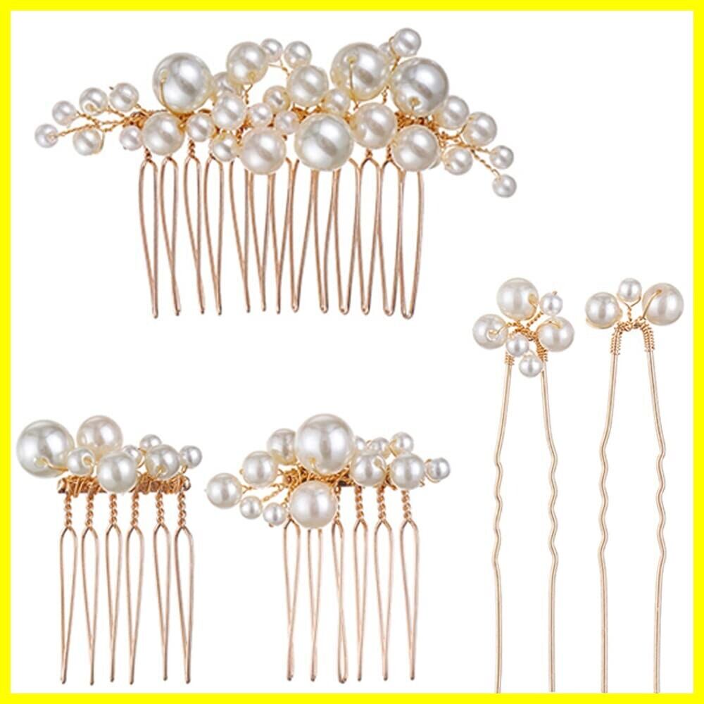 ヘアアクセサリー パール髪飾り 5本セット 3種類 ヘアピン コーム Uピン ヘアクリップ ウェディング 髪飾りフォーマル 結婚式/ウェディング/パーティー/子供 卒業式/入学式/花嫁などの髪飾り用