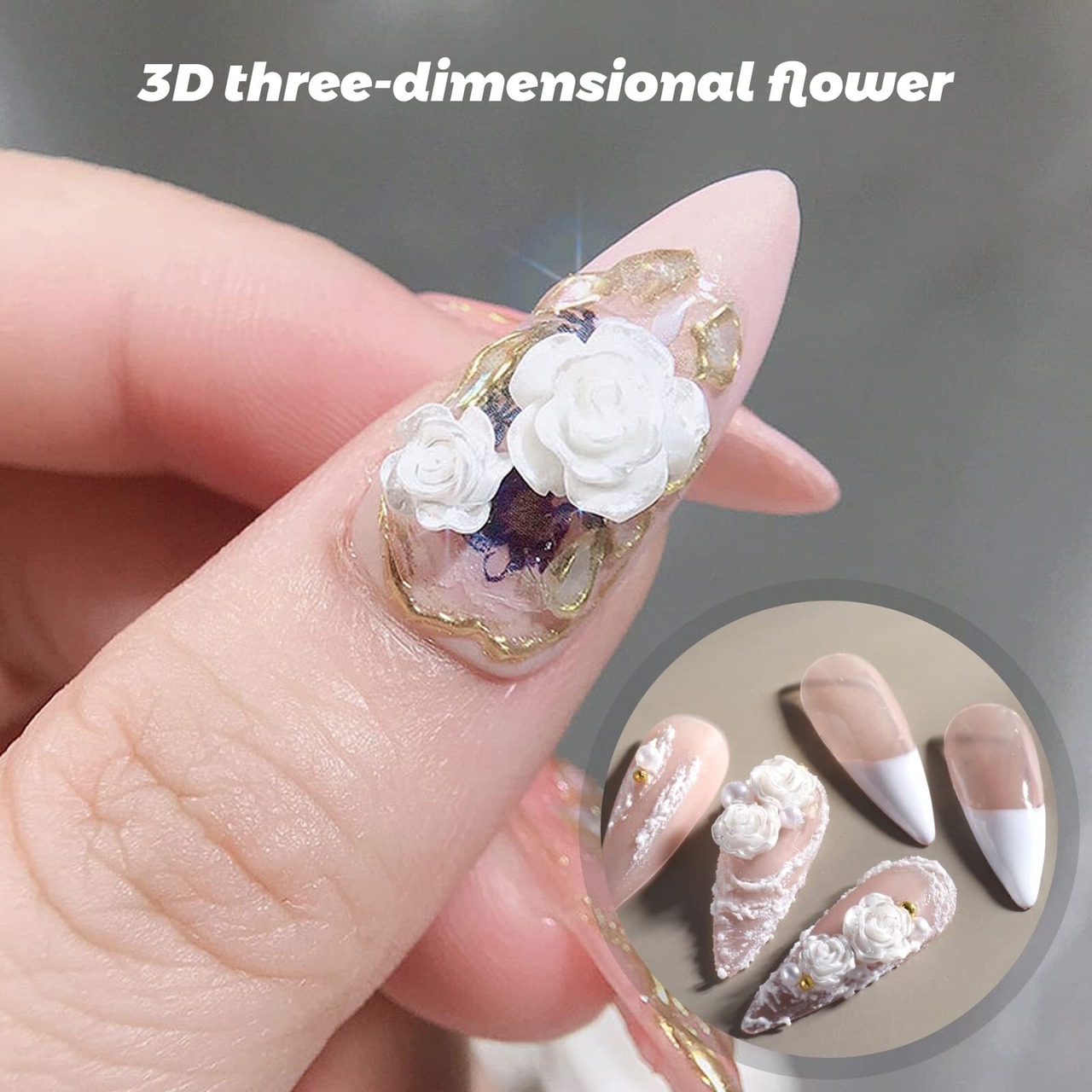 【3dネイルパーツ】立体的で存在感抜群です。一粒だけでネイルを可愛く華やかに飾ります。自宅でもエレガントで大人っぽい印象のフラワーネイルを楽にできます。