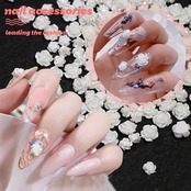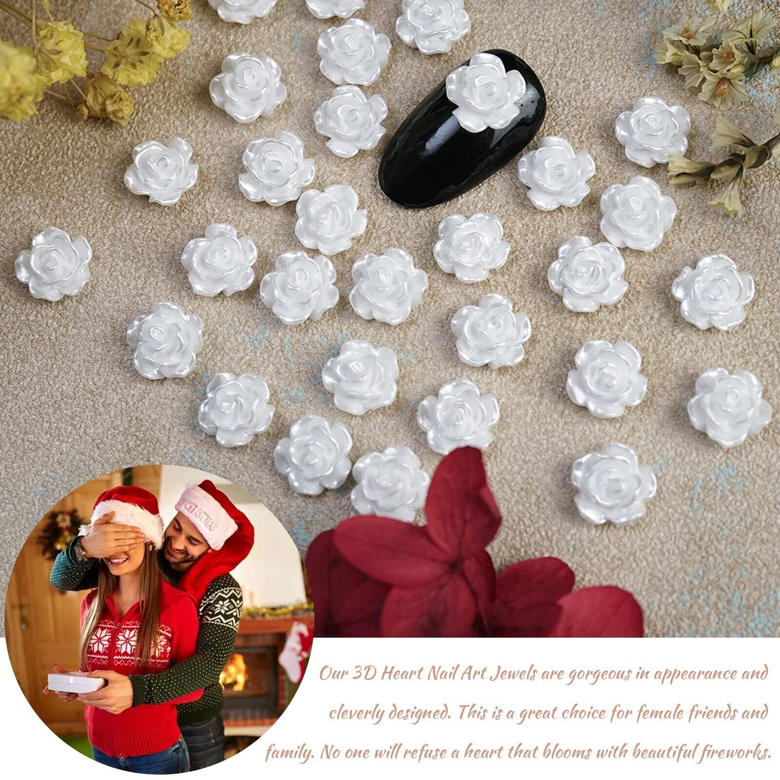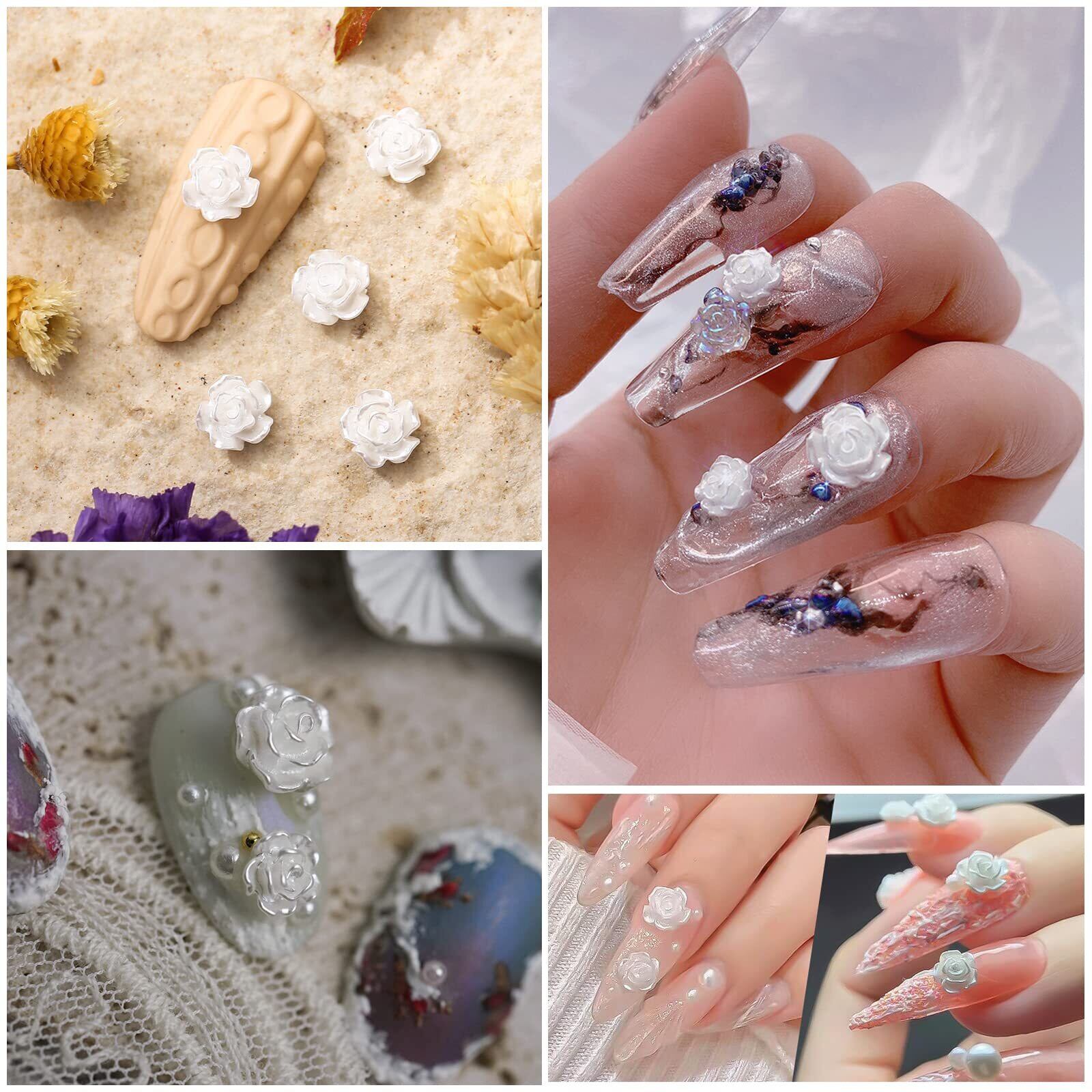 ネイルパーツ 花 200個セット 立体 白い花 パール風 バラ カメリア 椿 3dパーツ 6mm 8mm ホワイト お花パーツ デコパーツ ジュエリーパーツ ネイルアート ジェルネイル レジン (ホワイト)