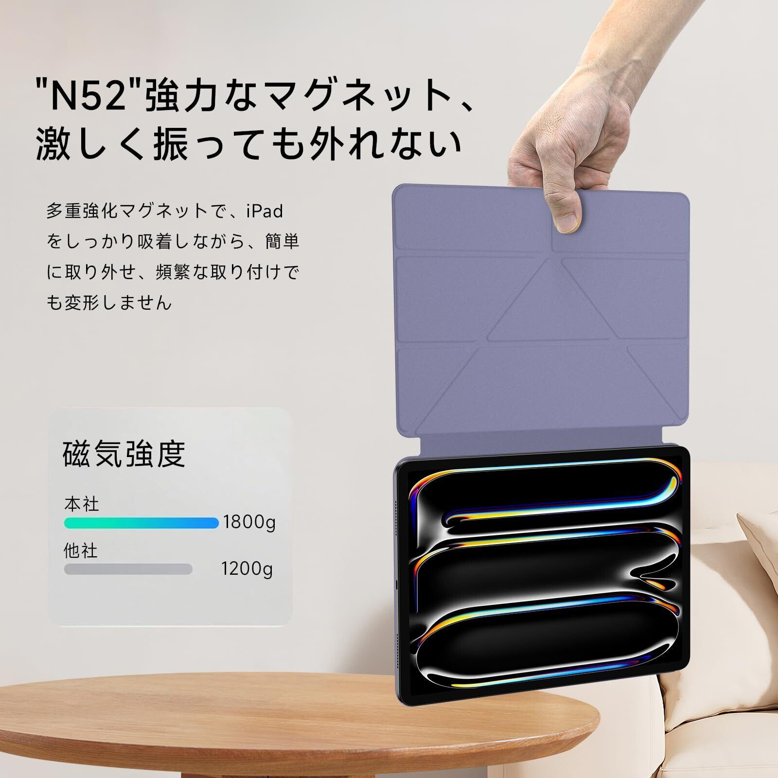 【強力マグネット吸着で取り付け簡単】マグネット式で、ケースの装着がスムーズに行えます。iPad本来の薄さを保ちながら、ケース自体も非常に軽量。強力な磁力でしっかりと固定され、ずれ落ちや剥がれの心配もありません。