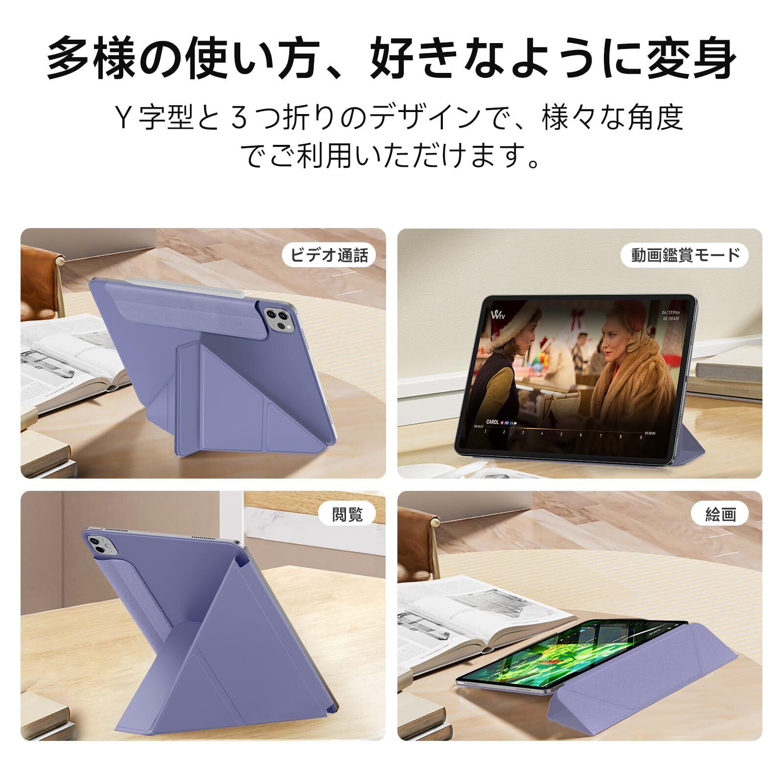 SANDUODD iPad Pro 11インチ ケース 第4/3/2世代(2022/2021/2020)に適用 強力マグネット吸着式 横置&縦置 角度調整可能 Y折スタンド Pencilホルダー付き iPad Pro ケース 11インチ 軽量 オートスリープ/ウェイク対応 (ラベンダー)