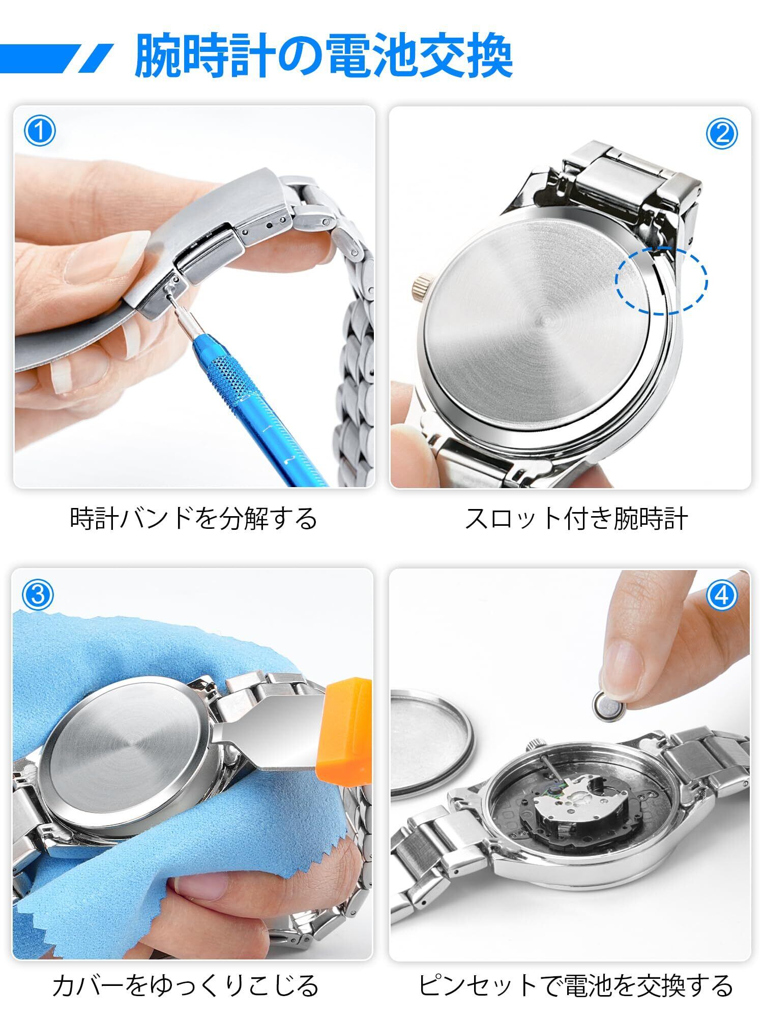 【JOREST】腕時計修理工具セット、時計 電池交換、腕時計ベルト工具、でんち交換 キット、 時計バンド/ベルト 調整工具、 ピン抜き工具、腕時計の裏蓋オープナー、 バネ棒外し、 取扱説明書(英語版)