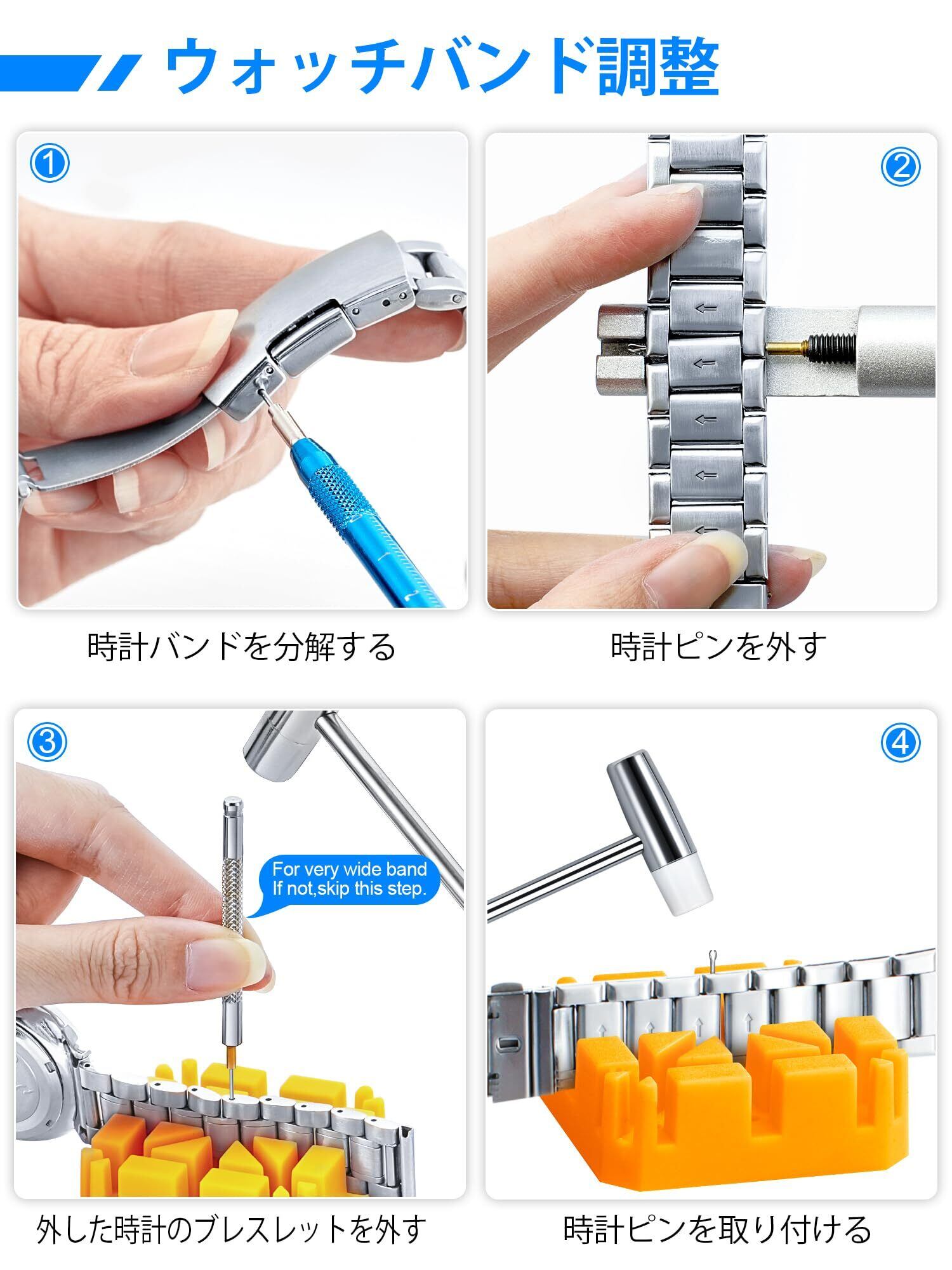 【ブレスレット取り外しツール】ウォッチ・ブレスレットの取り外しや交換に加え、ウォッチ・ピン・ツールは使いやすく、別途定規を探すことなくピンの長さを測ることができます。