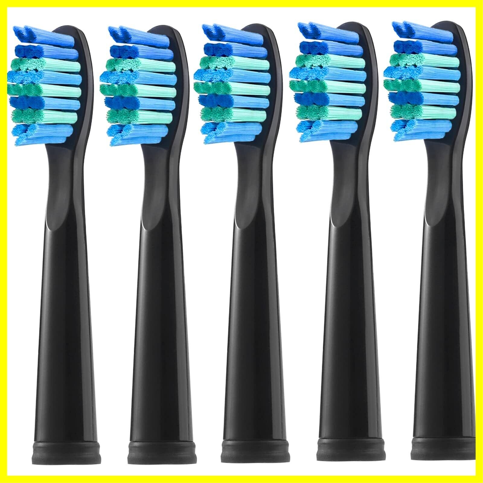 teeteck 電動歯ブラシの替えブラシ,ブラシヘッドは 互換性シーゴ/フェアリーウィルFairywill FW-507/508/551/515/917/959/2011,FW-D1/D3/D7/D8に適しています5個セット ブラック(ミディアム ソフト毛)