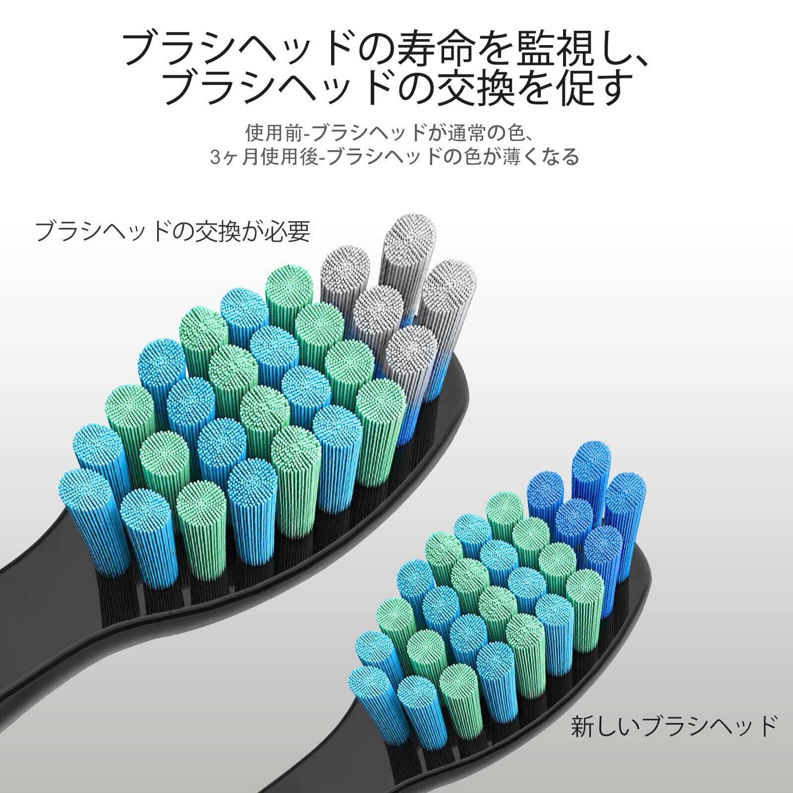 【使いやすい】:右回転でロックが解除され、余分な補助手段なしで交換するのに便利です。長期間使用できる5つの交換用ブラシヘッド。歯科医師は、3ヶ月ごとにブラシヘッドを交換することを推奨しています。
