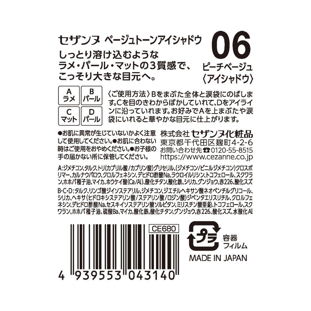 セザンヌ ベージュトーンアイシャドウ 06 ピーチベージュ 4.3g ラメ パール マット 4色アイシャドウ