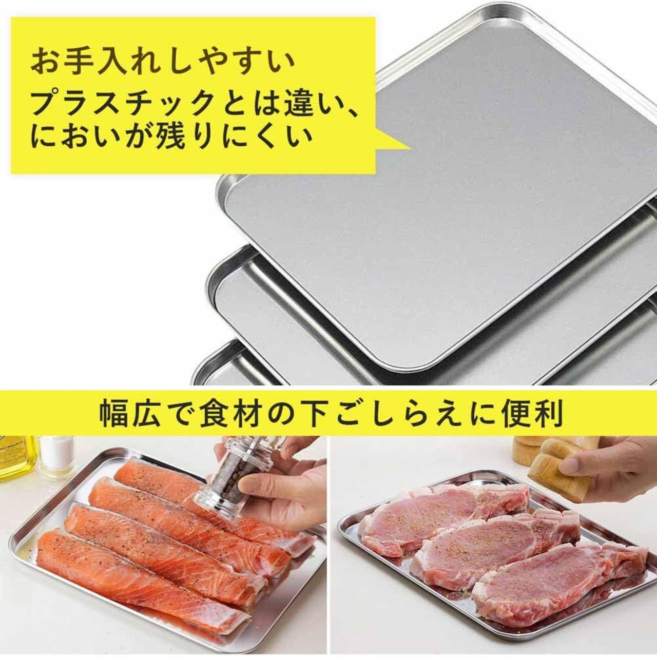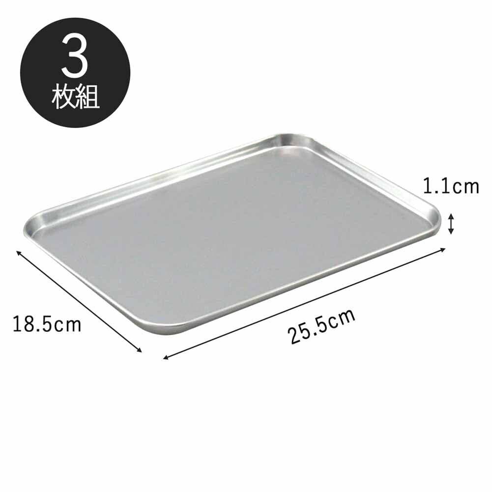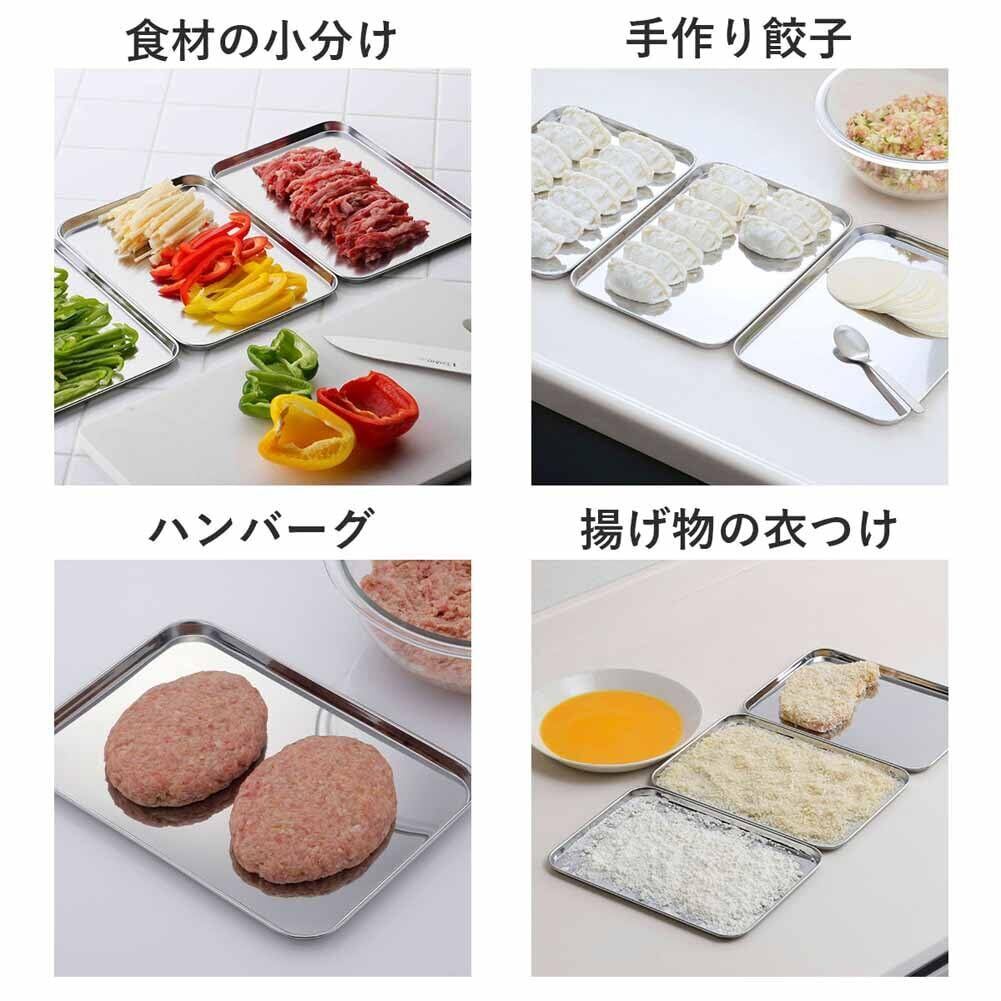 下村企販 トレー 下ごしらえ浅型バット 3枚 【日本製】 18.5×25.5cm 食洗機対応 小分け 料理 アウトドア セット ステンレス 燕三条 34625