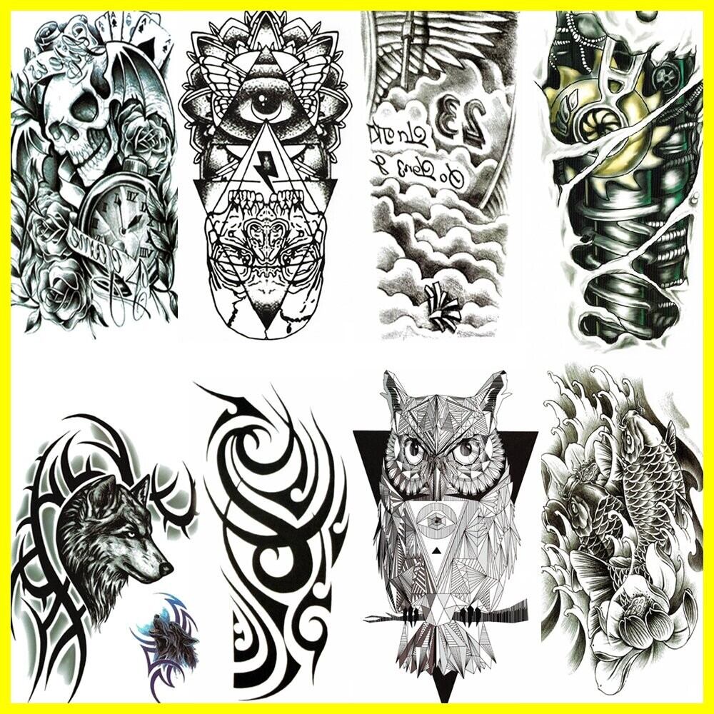 【 含まれるもの】髑髏 (スカル ドクロ )時計 黒 薔薇 文字、トライバル 目 、翼 空 雲 難波、サイボーグの前腕、トライバル 狼(オオカミ)、トライバル、黒 鯉 蓮の花。