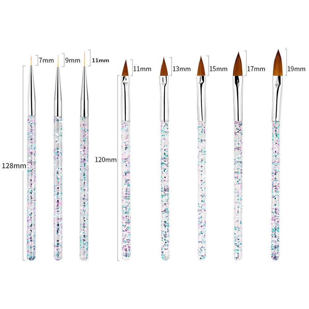 サイズ:写真をご参考にしてください。スカルプネイルブラシは5つのサイズがあり、極細ネイル筆は3つのサイズがあります。