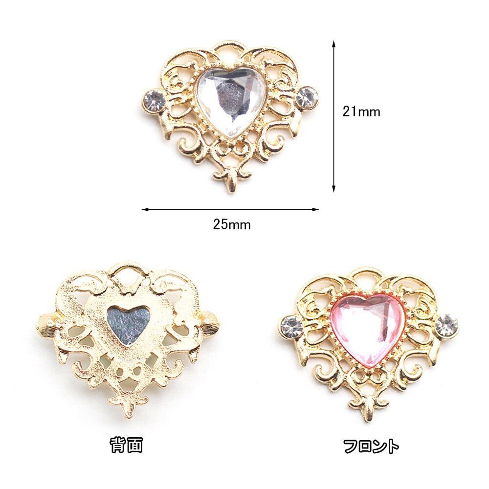 [BTtime] ビジューパーツ 台座つき 16個セット ビジュー ハート パーツ センターパーツ セット ストーン チャーム パーツ ジュエル デコ素材 ブローチ アクセサリーパーツ DIY製作キット ゴスロリ/ロリータ アクセント 貼り付け エレガント 豪華 ビジューキラキラ 目立つ