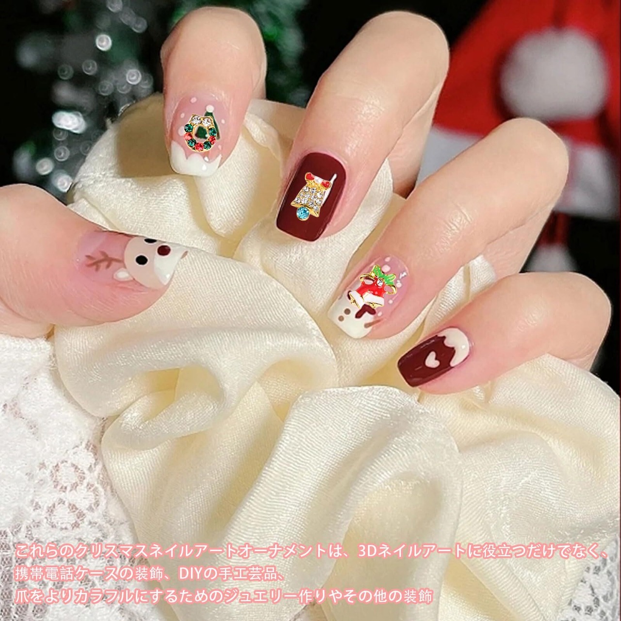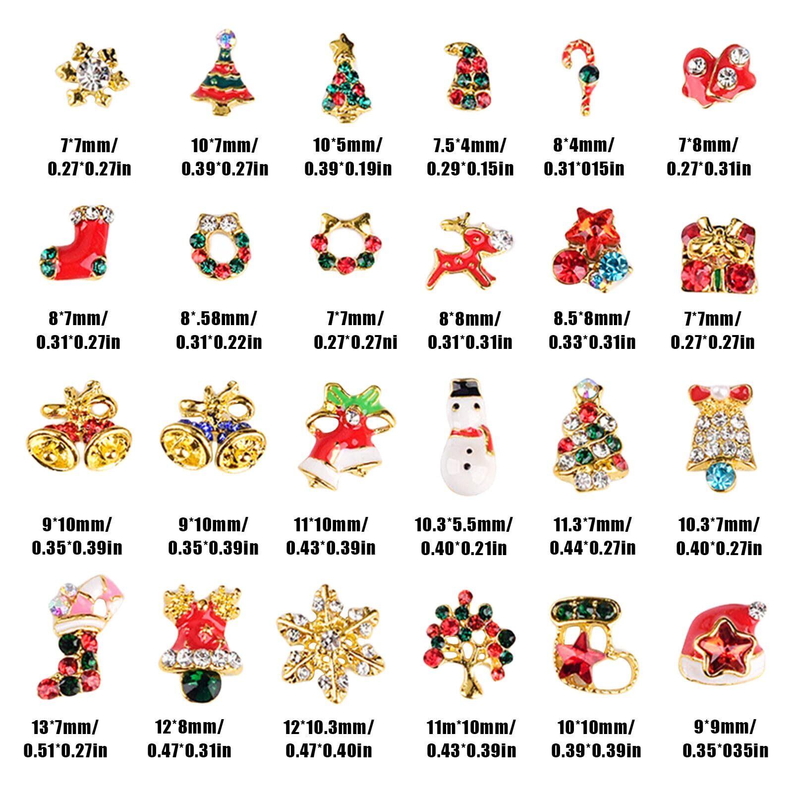 【クリスマスネイルパーツ】可愛い雪だるま、雪の結晶、クリスマスツリー、トナカイ、ベル、靴下などのネイルパーツがセットになって登場!クリスマスネイルを作りたい時に欠かせない。