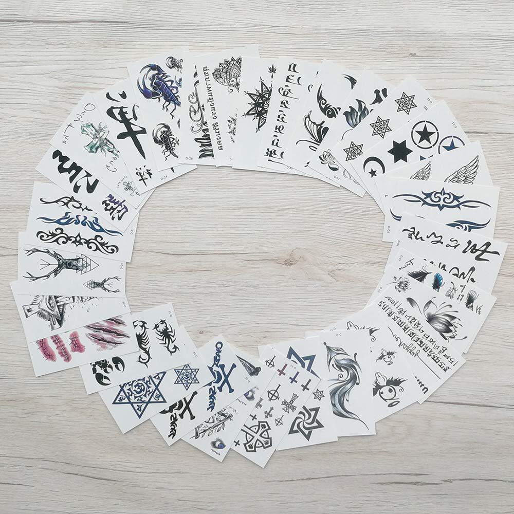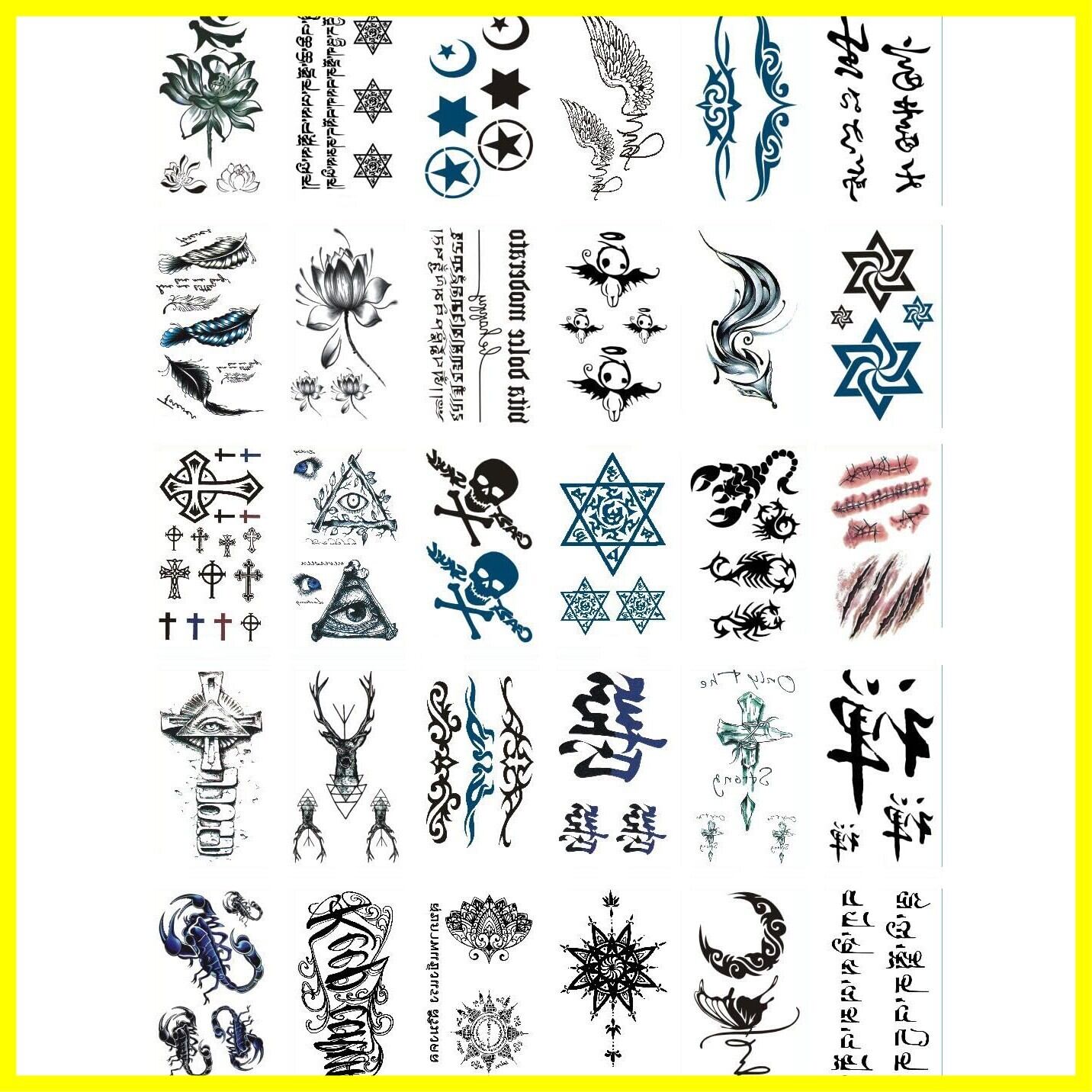 【セット内容】タトゥーシール 30枚セット。含まれもの:蓮、六芒星、羽、文字、天使の羽 ウィング、さそり、蠍、トライバル 黒、 青 鎖、 有刺鉄線 、腕輪、バーコード。