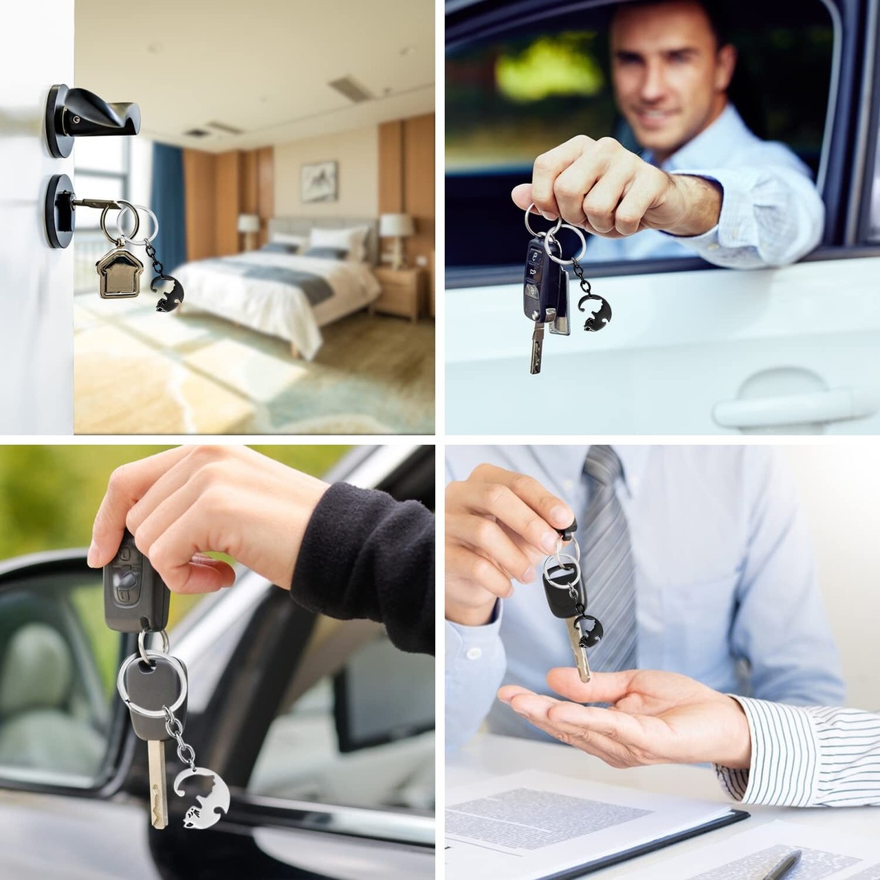 【キュートなねこのキーホルダーセット】銀猫と黒猫を並べて並べても可愛い! 猫のキーリングは、携帯ケースのアクセサリー、財布のペンダント、ハンドバッグの装飾、USBキーリング、車のキーペンダントなどとして使用できます。