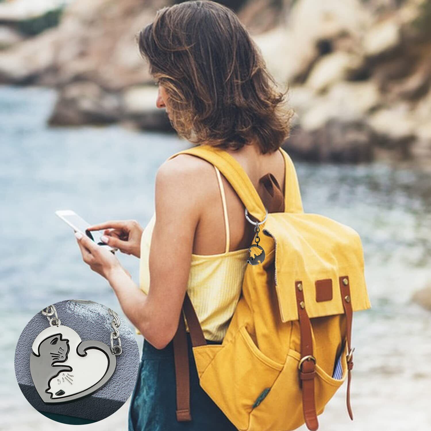 【ハート型キーホルダー】2匹の猫が抱き合うハート型の猫型キーホルダーです。ステンレス素材で錆びません。 これは、カップルや友人があなたの愛と友情を表現するためのギフトになります。