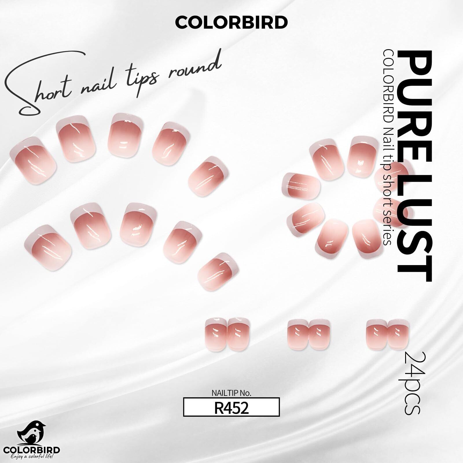COLORBIRD ネイルチップ ショート 24枚 ピンク フレンチ ネイル 付け爪 チップ 短め 可愛い スクエアオフ (R452)