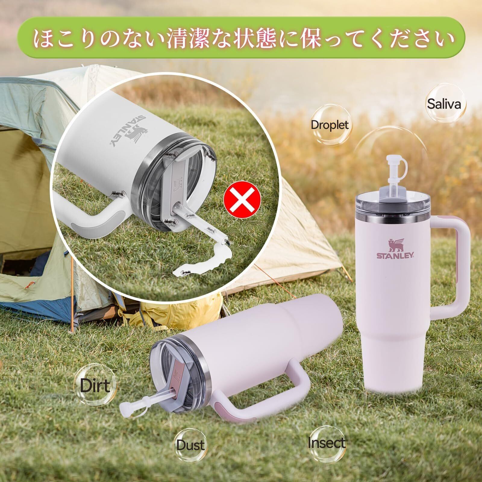 【 限定ブランド】ストローカバー こぼれストッパー6個セッ、Stanley Quencher H2.0 40オンスおよび30オンスのタンブラーに適合します。角型こぼれ止め、丸型こぼれ止め、ストロー蓋が付属します。 (2.0に適用)