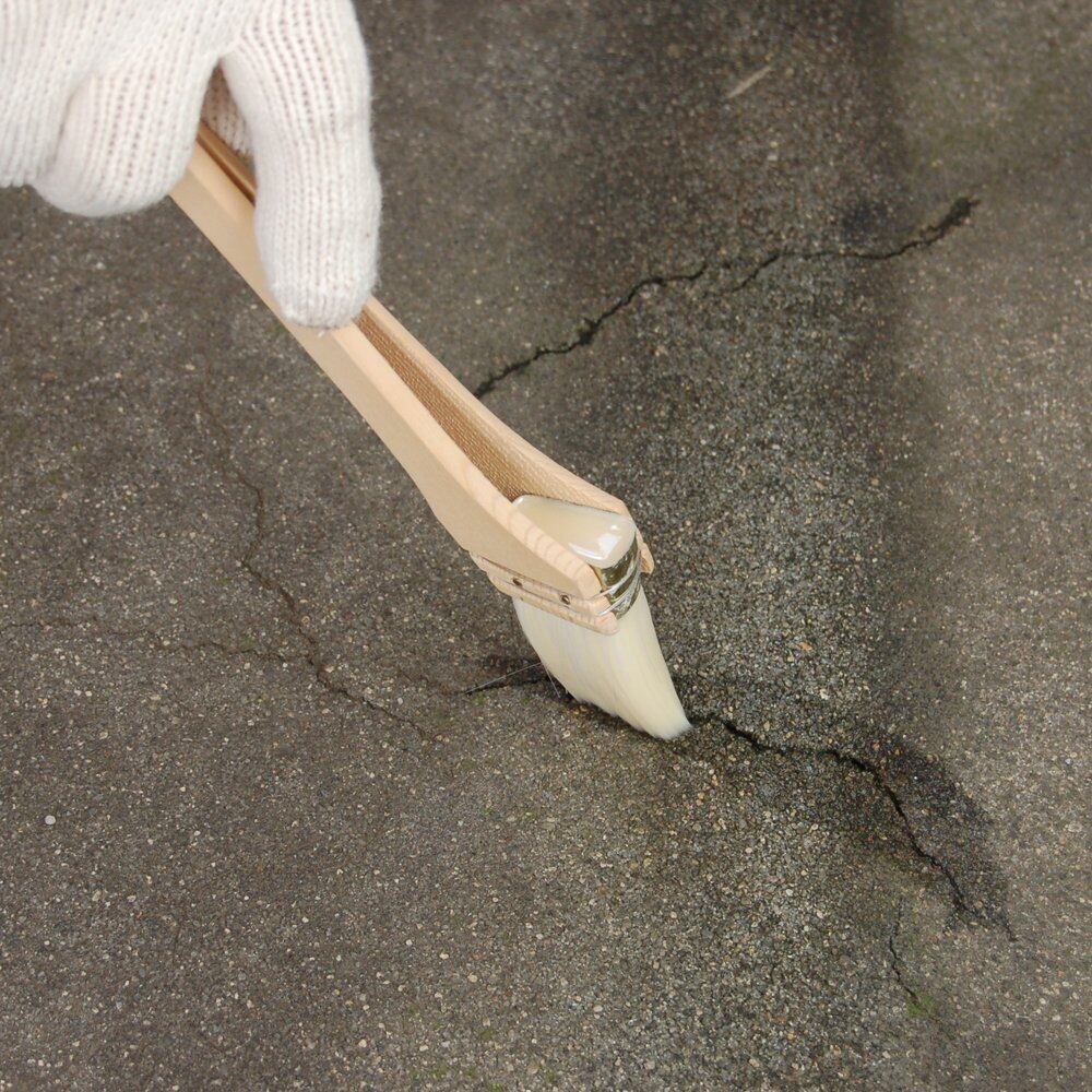 ●大きなヒビ割れには、セメントと混合して、ドロドロのペースト状液体をハケ塗りしますと、セメント粉が骨材になりヒビ割れに入り効果的に防水補修します。