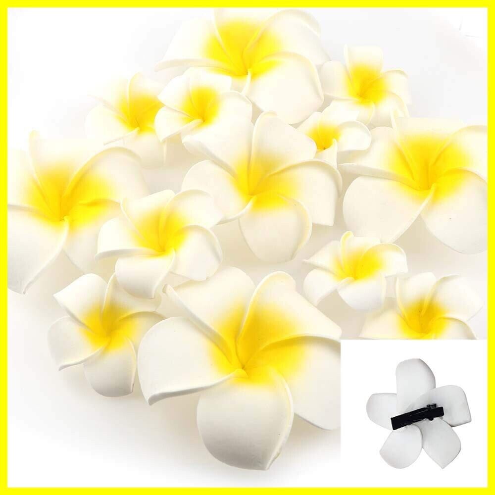 Yesallwas ヘア クリップ ピン プルメリア 造花 5cm 20個セット 花のみ 白 ヘア クリップ ピン プルメリア 髪飾り お花 DIY手作業 結婚式 パーティー用 飾り付け 写真撮影小物