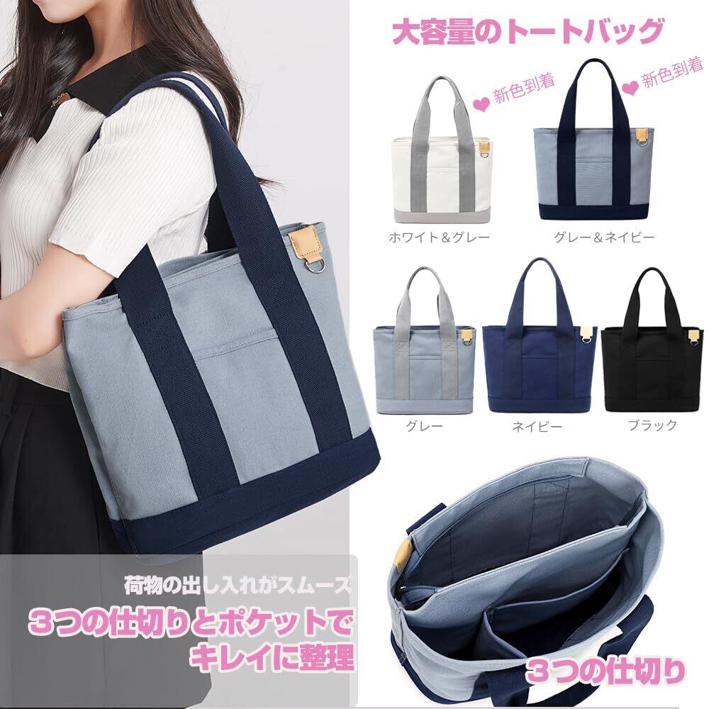 [MIPOHAM] トートバッグ レディース キャンバス 仕切り Lサイズ 大容量 キャンパストート 帆布 大きめ a4 トート マチ広 軽量 マザーズバッグ シンプル 無地 おしゃれ 多収納 ポケット 頑丈 保育園 通勤 通学 旅行