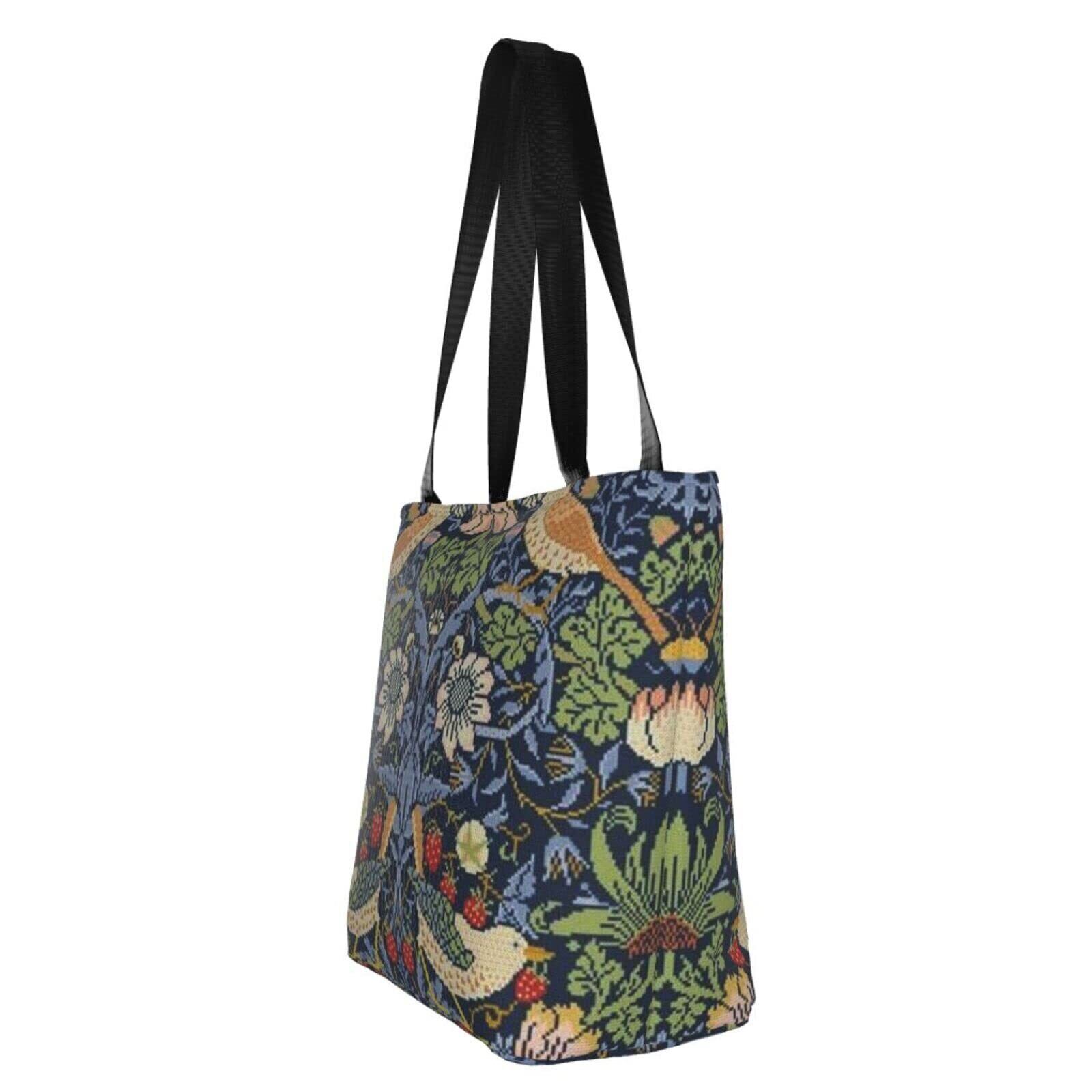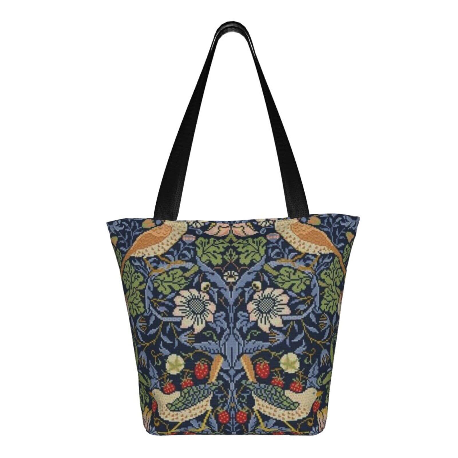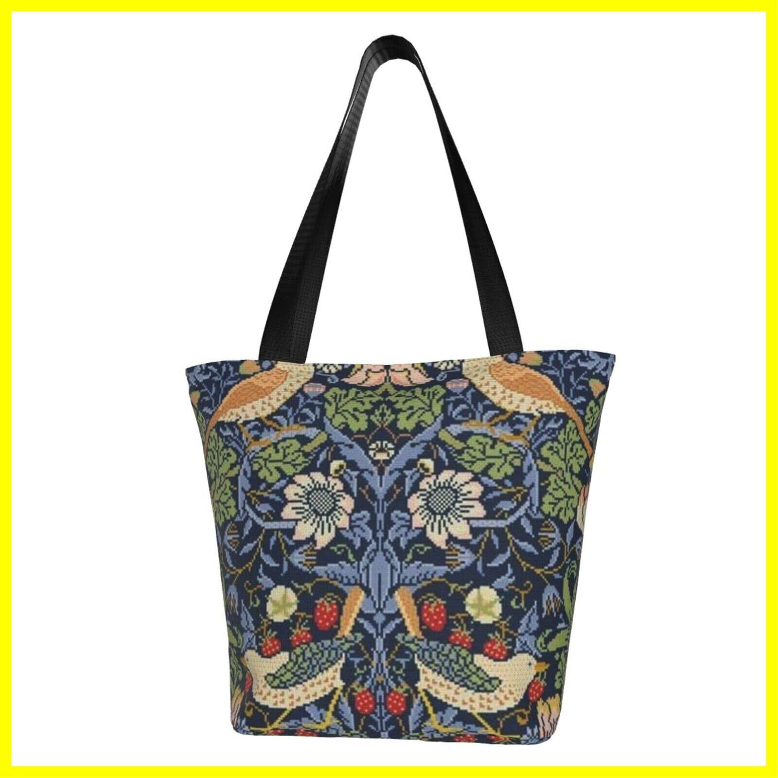 [MINIER] ウィリアム・モリス エコバッグ レディーストートバッグ ショルダーバッグ 大容量買い物バッグコンビニバッグ 軽量防水 手提げバッグショッピングバッグ多機能ポータブル折りたたみ収納バッグ。幅28×高さ33cm×厚み18cm