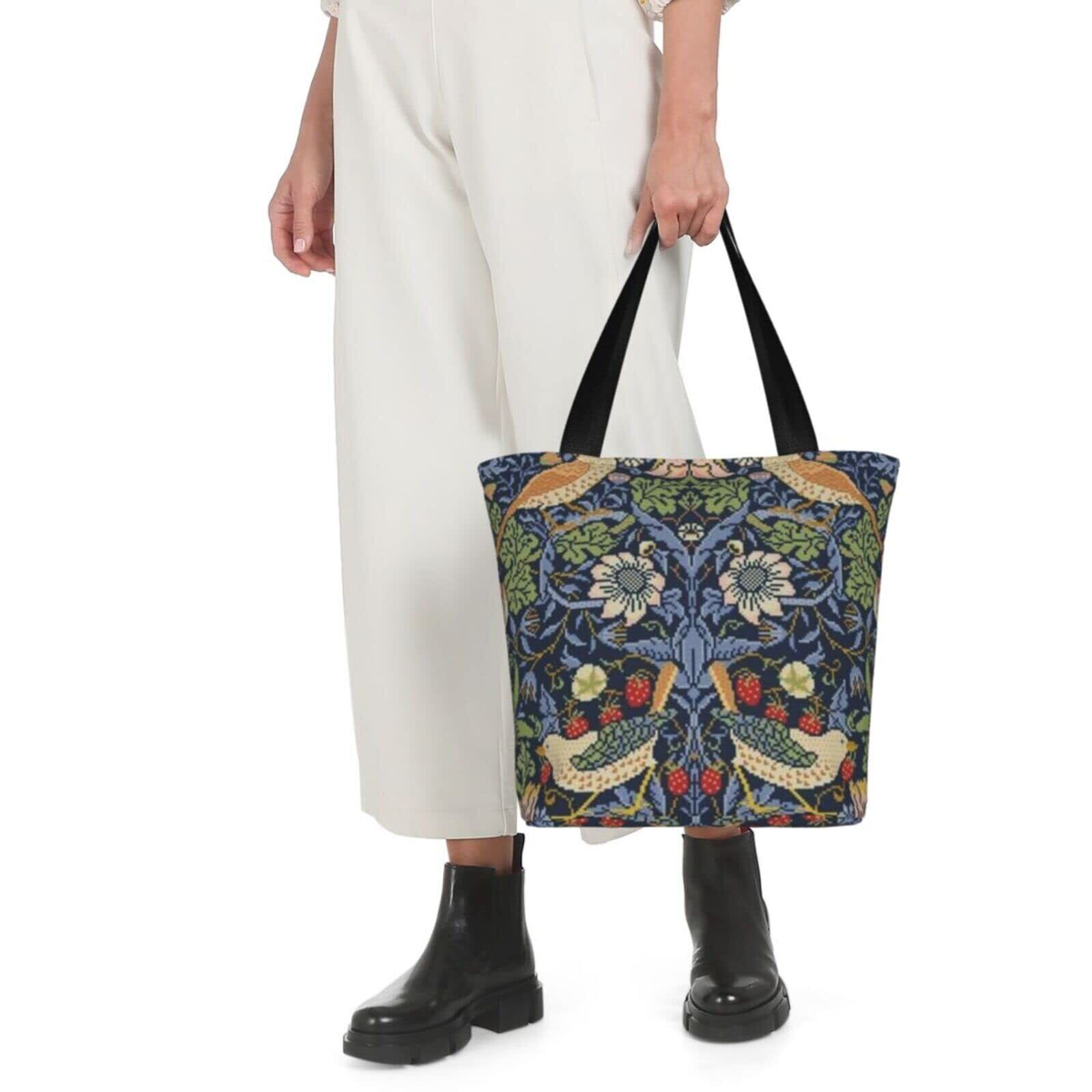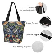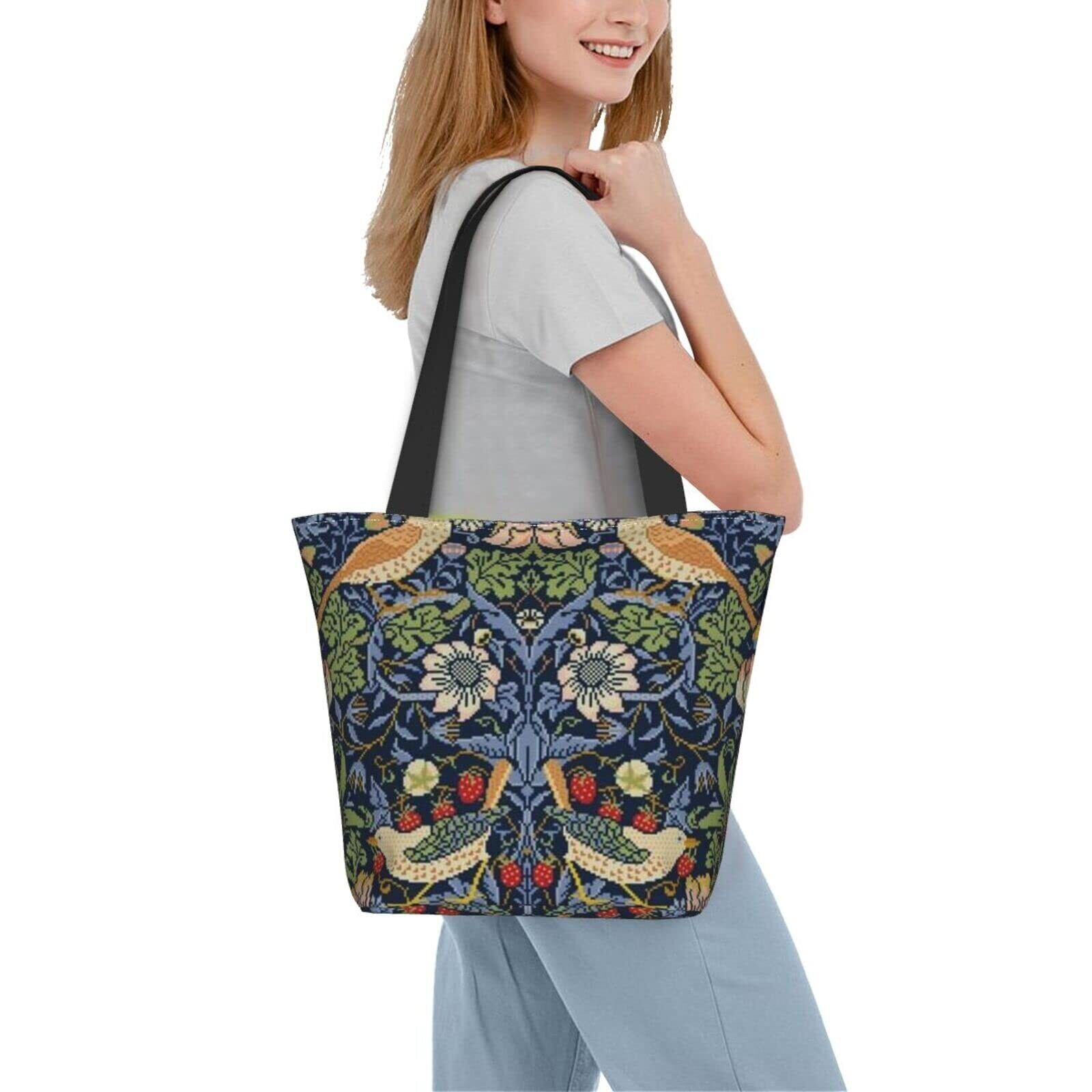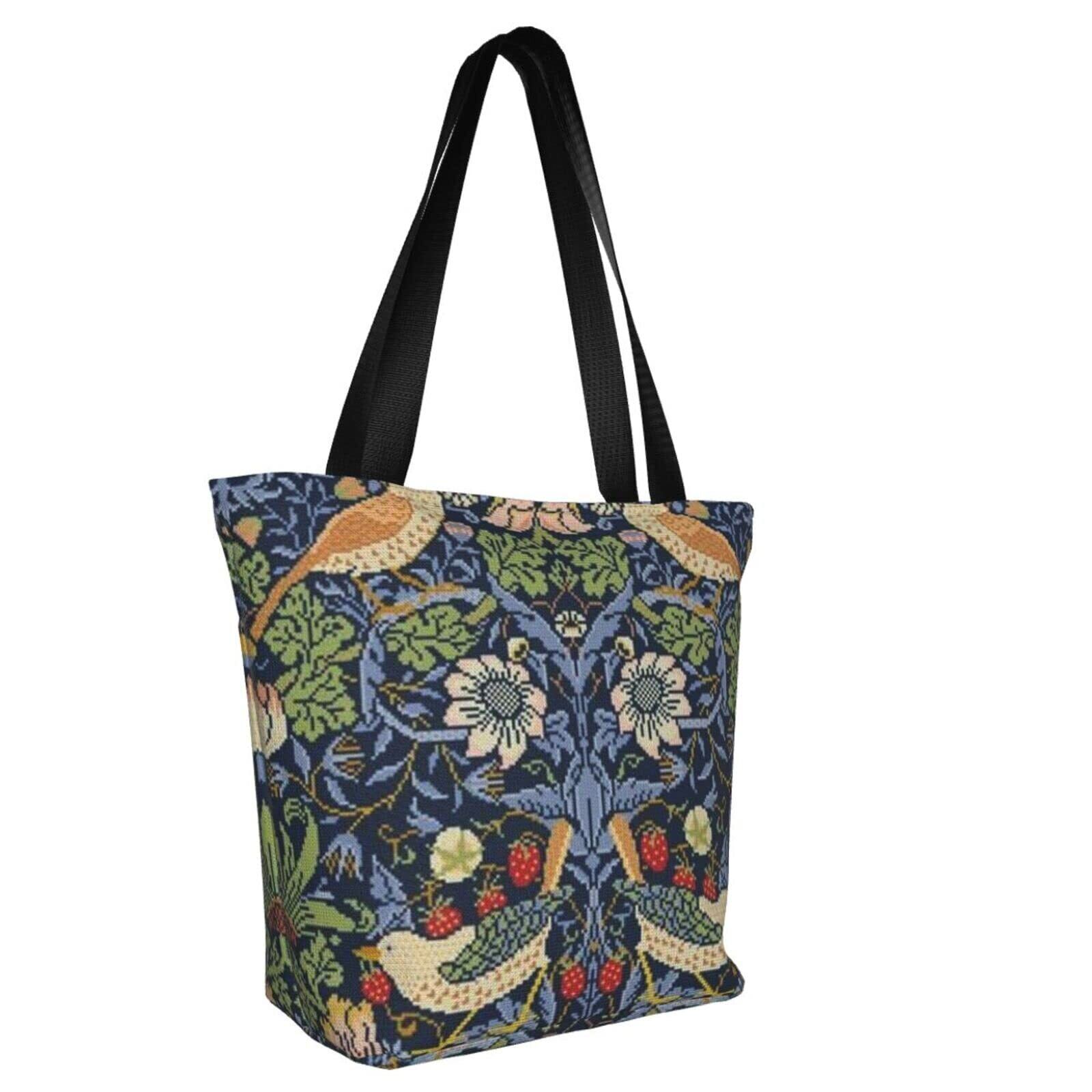 [MINIER] ウィリアム・モリス エコバッグ レディーストートバッグ ショルダーバッグ 大容量買い物バッグコンビニバッグ 軽量防水 手提げバッグショッピングバッグ多機能ポータブル折りたたみ収納バッグ。幅28×高さ33cm×厚み18cm
