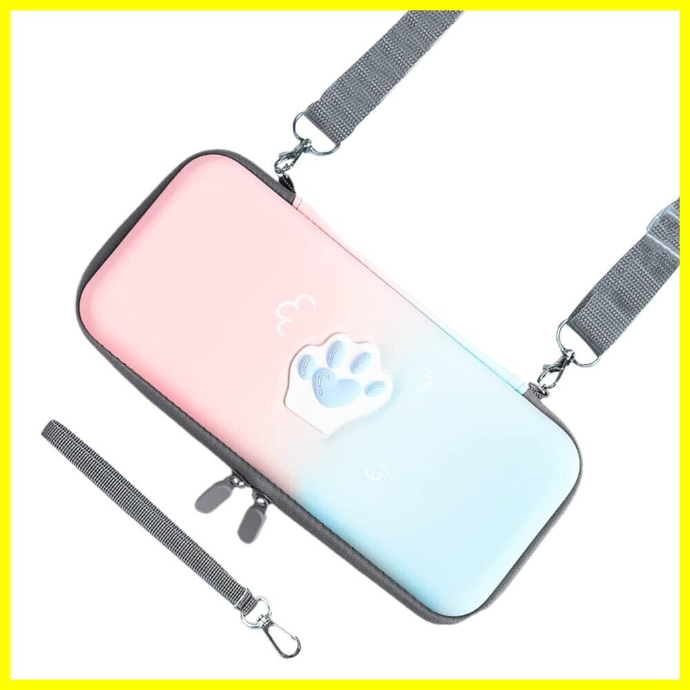 HIGHAWK Switch収納 Nintendo Switch用ケース ショルダー 保護 カバー 防水 猫肉球 可愛い 防塵 耐衝撃 ニンテンドー用 任天堂スイッチ カード収納(Switch専用・ブルーピンクのグラデーション)