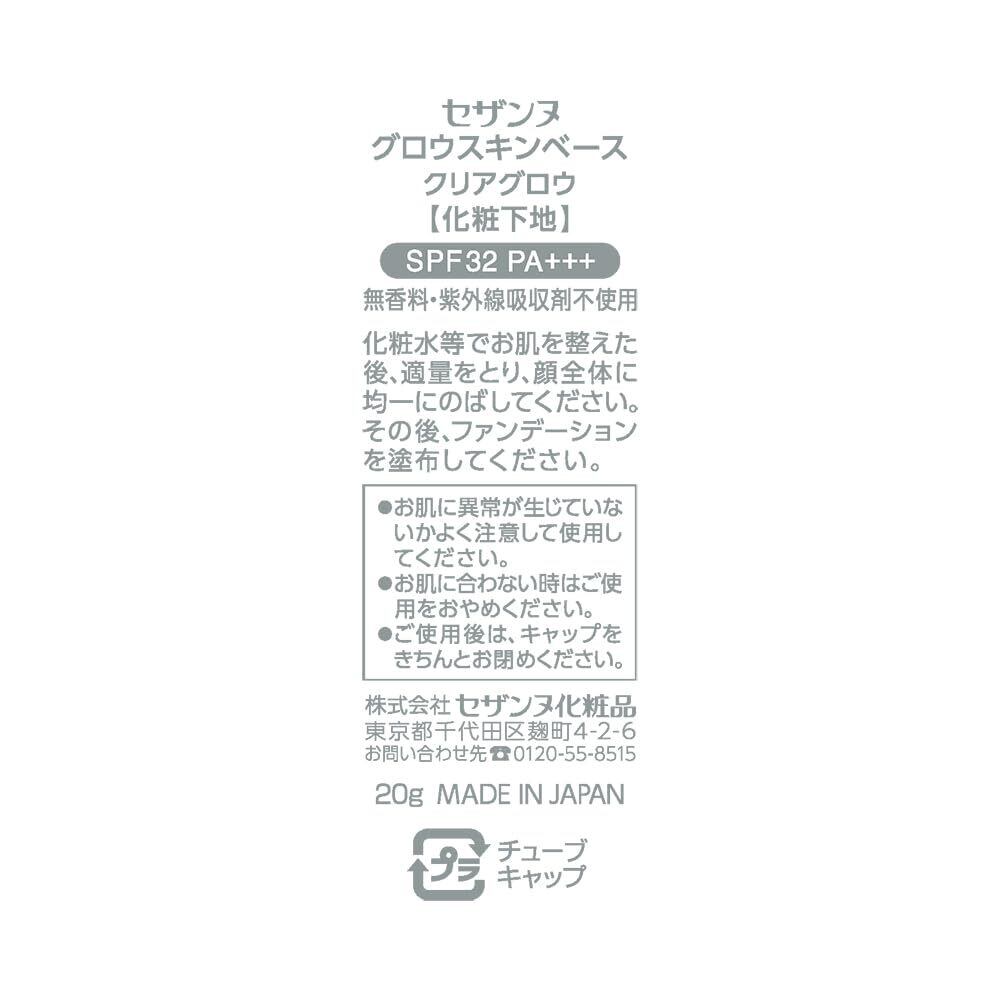セザンヌ グロウスキンベース クリアグロウ 20g 化粧下地 発光ツヤ感下地 スキンケア