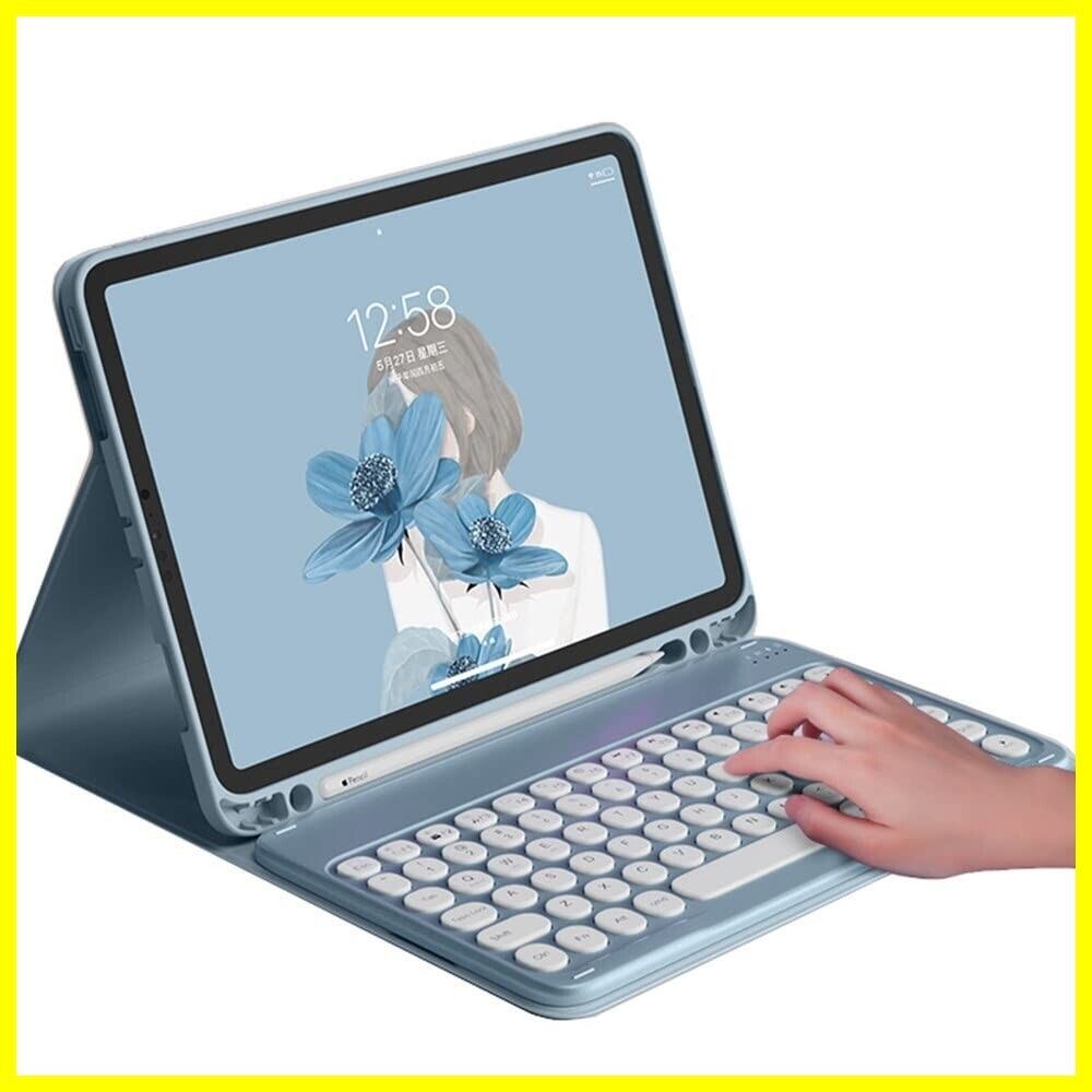 iPad6 iPad5 iPad Air Air2 Pro9.7 キーボード ケース 丸型キー 可愛い カラーキーボード カラフル iPad 第6世代 第5世代 9.7インチ アイパッド6 丸い 分離式 キーボード付き カバー アップル ペンシル 収納可能 (iPad5/iPad6/Air/Air2/Pro9.7, 黒)