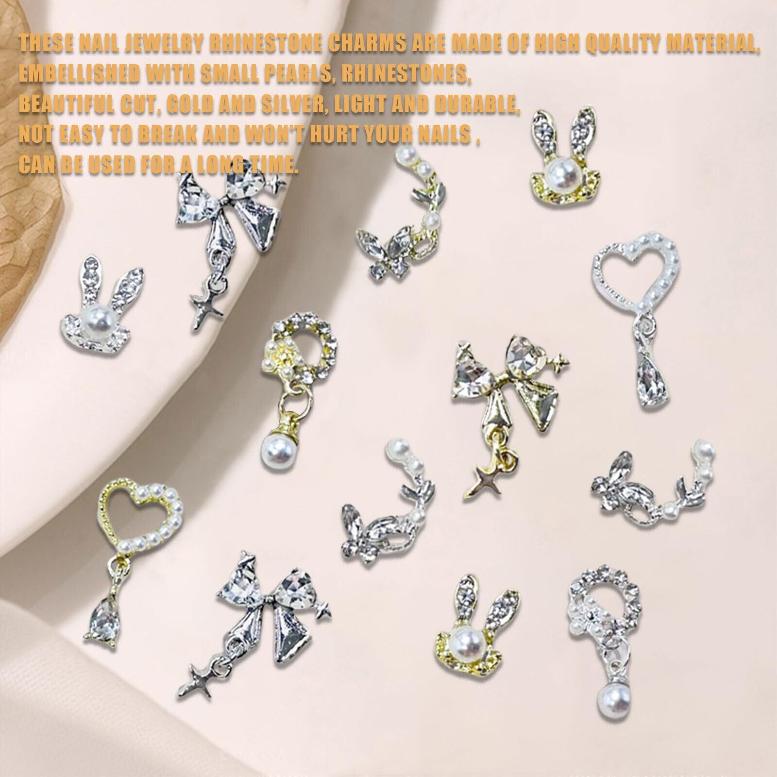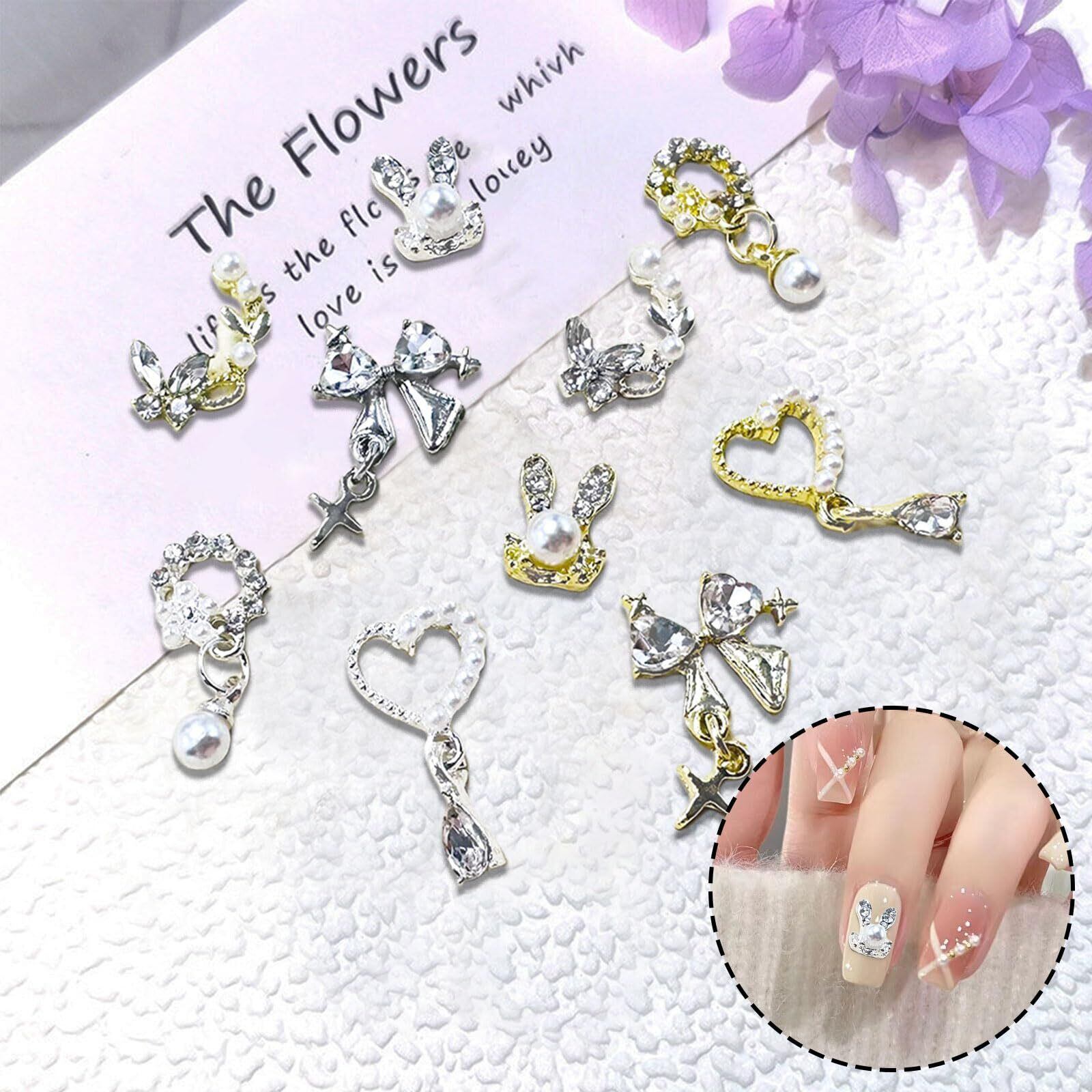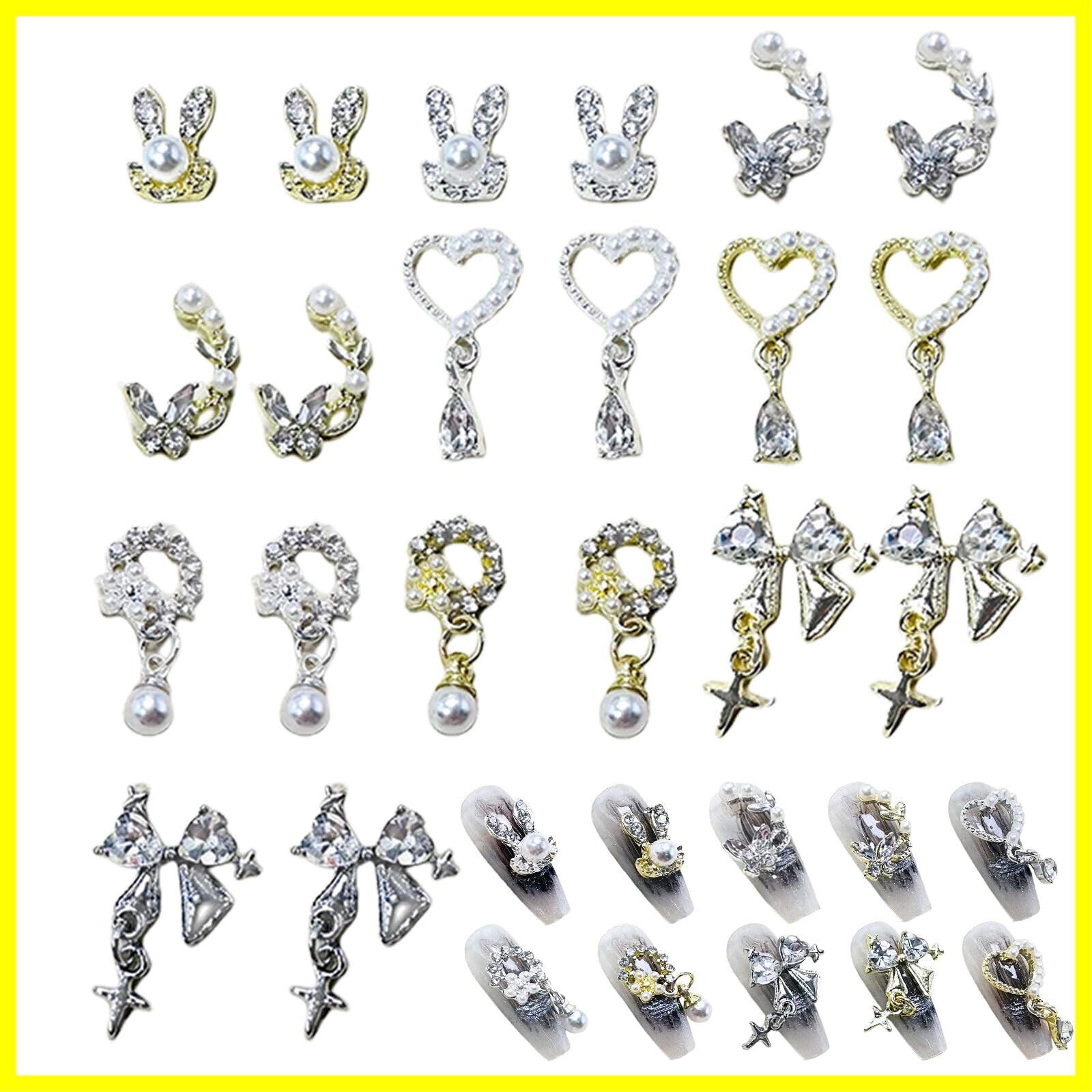 【揺れるネイルパーツ】ウサギ、蝶々、リボンなどさまざまなデザインのネイルパーツが揃っています。シルバーとゴールドをご用意して、ネイルのワンポイントにぴったりです。