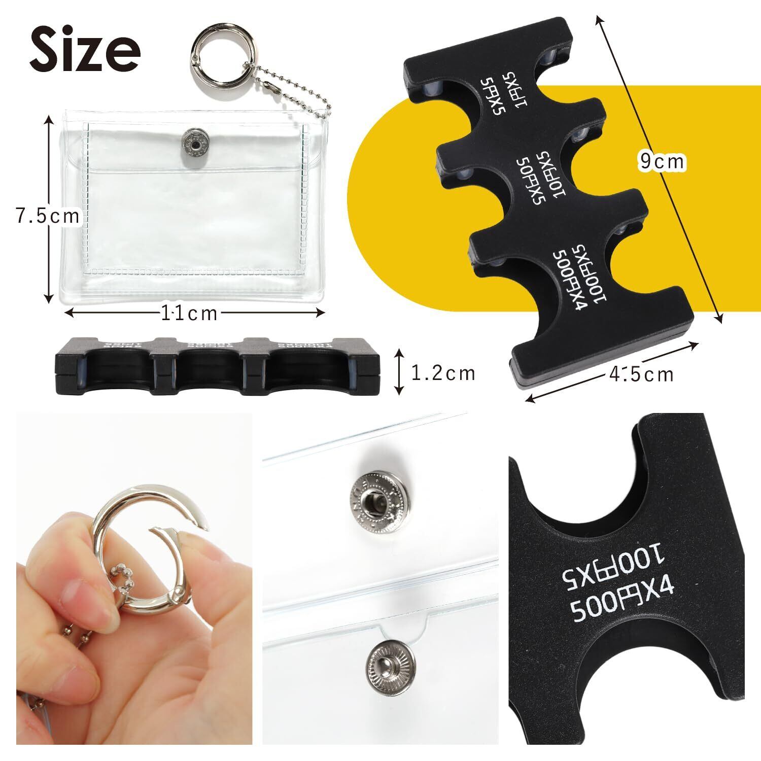 【クリアケース付き】クリアケース付きで、お札の収納も可能です。また、クリアケースにはカードポケットがある為、交通系icカードも入ります!透明素材で中身が見え、おしゃれでかわいいです。また、使いやすい丸型カラビナ付きで、鍵などを付けたり、バッグなどに取り付けることも可能です。
